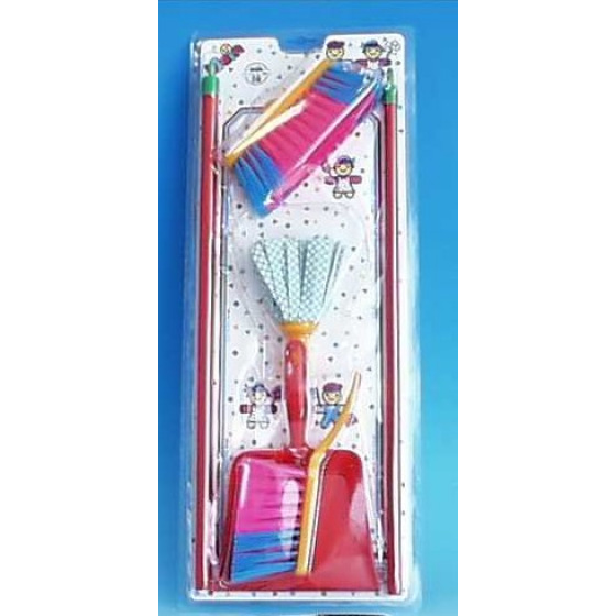Súprava metly, metličky, lopatky a mopu. Balené na blistri. Vhodné pre deti od 3 rokov.