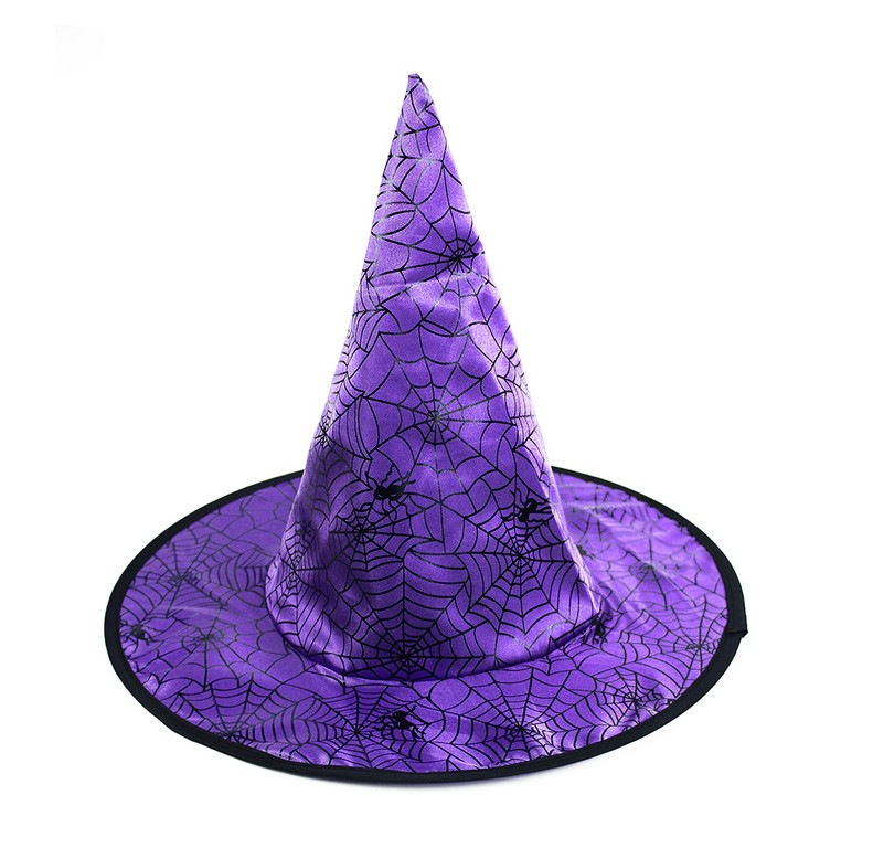 Čarodějnický klobouk je skvělým doplňkem na Halloween párty nebo karneval! Fialový klobouk je dekorován pavučinami a pavouky. Staň se hvězdou večírku díky tomuto klobouku!