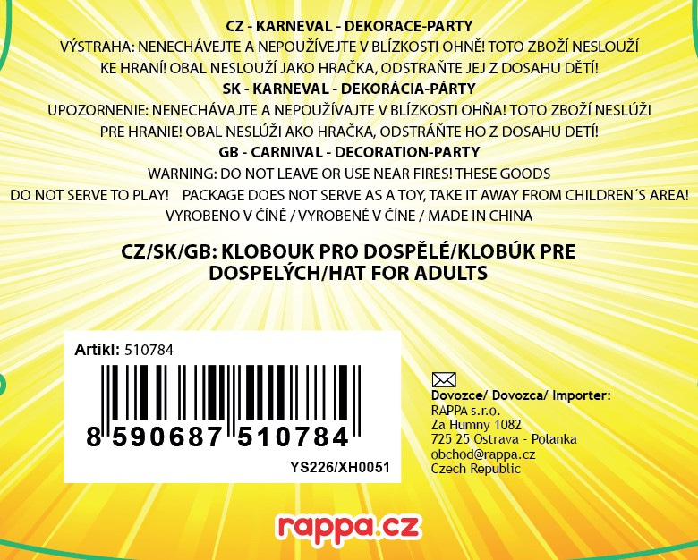 Popis Rappa klobouk čarodějnický/Halloween oranžový dospělý