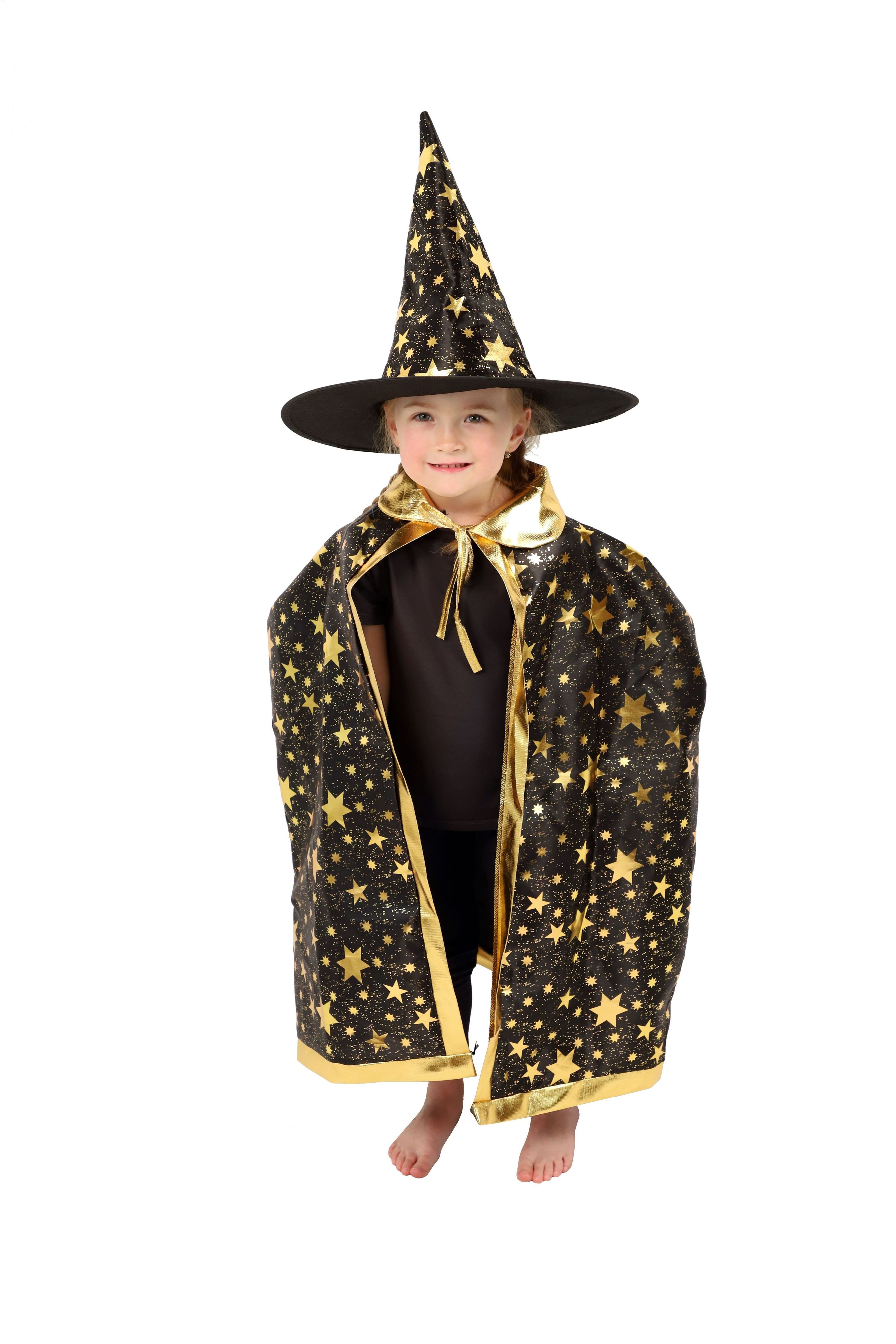 Dětský čarodějnický klobouk a plášť jsou inspirovány světem kouzel a magie. Mají černou barvu a jsou zdobené zlatými hvězdami, které vzbuzují čarodějnický dojem. Děti si mohou hrát na kouzelníky a kouzelnice, zkoumat svět kouzel a vytvářet své vlastní příběhy plné dobrodružství a fantazie. Čarodějnický klobouk s pláštěm jsou oblíbenou součástí karnevalových a halloweenských kostýmů. Není hračka