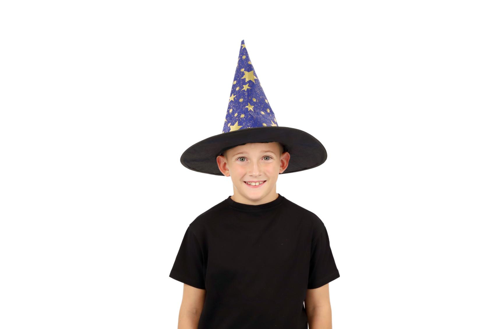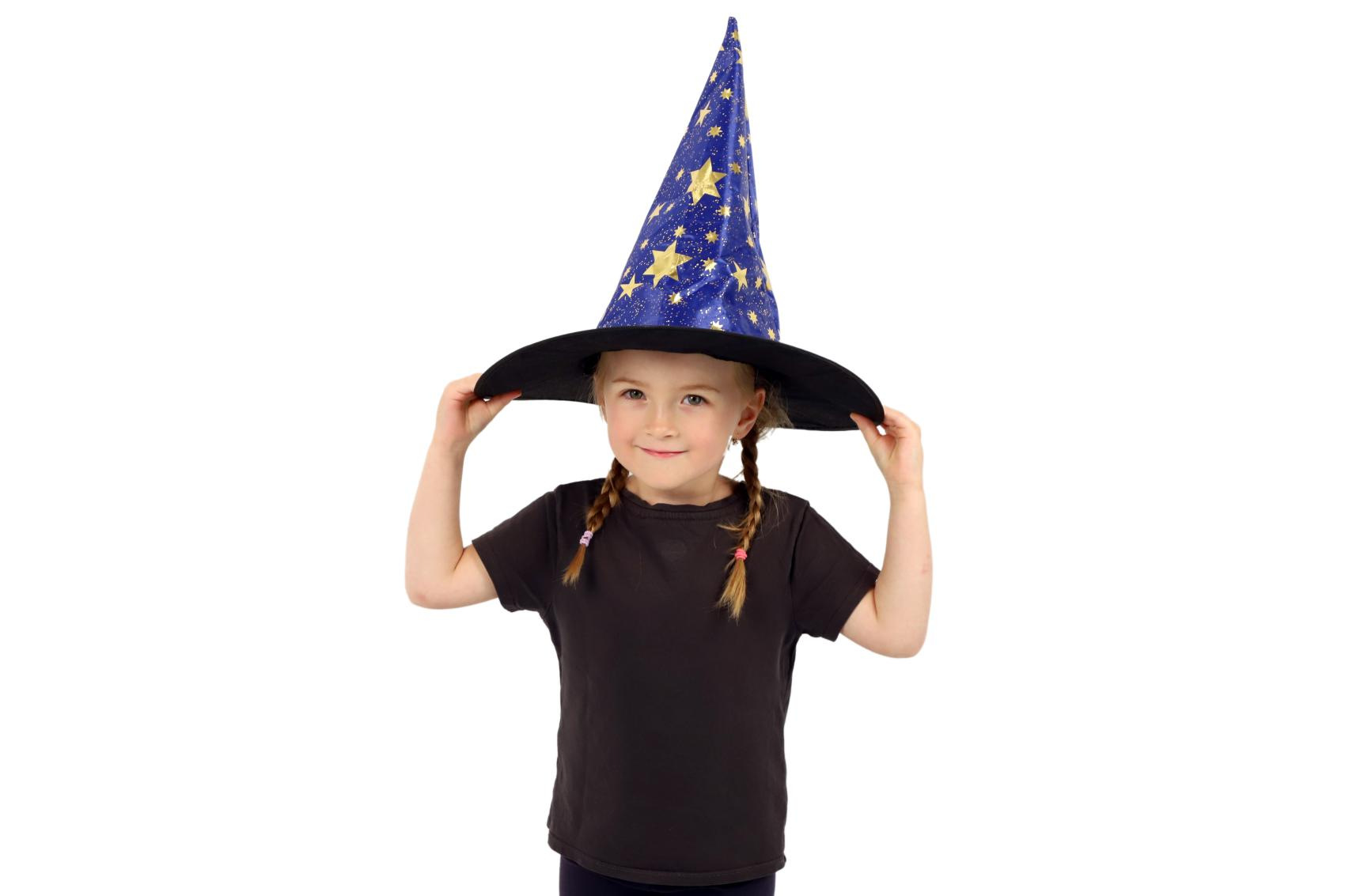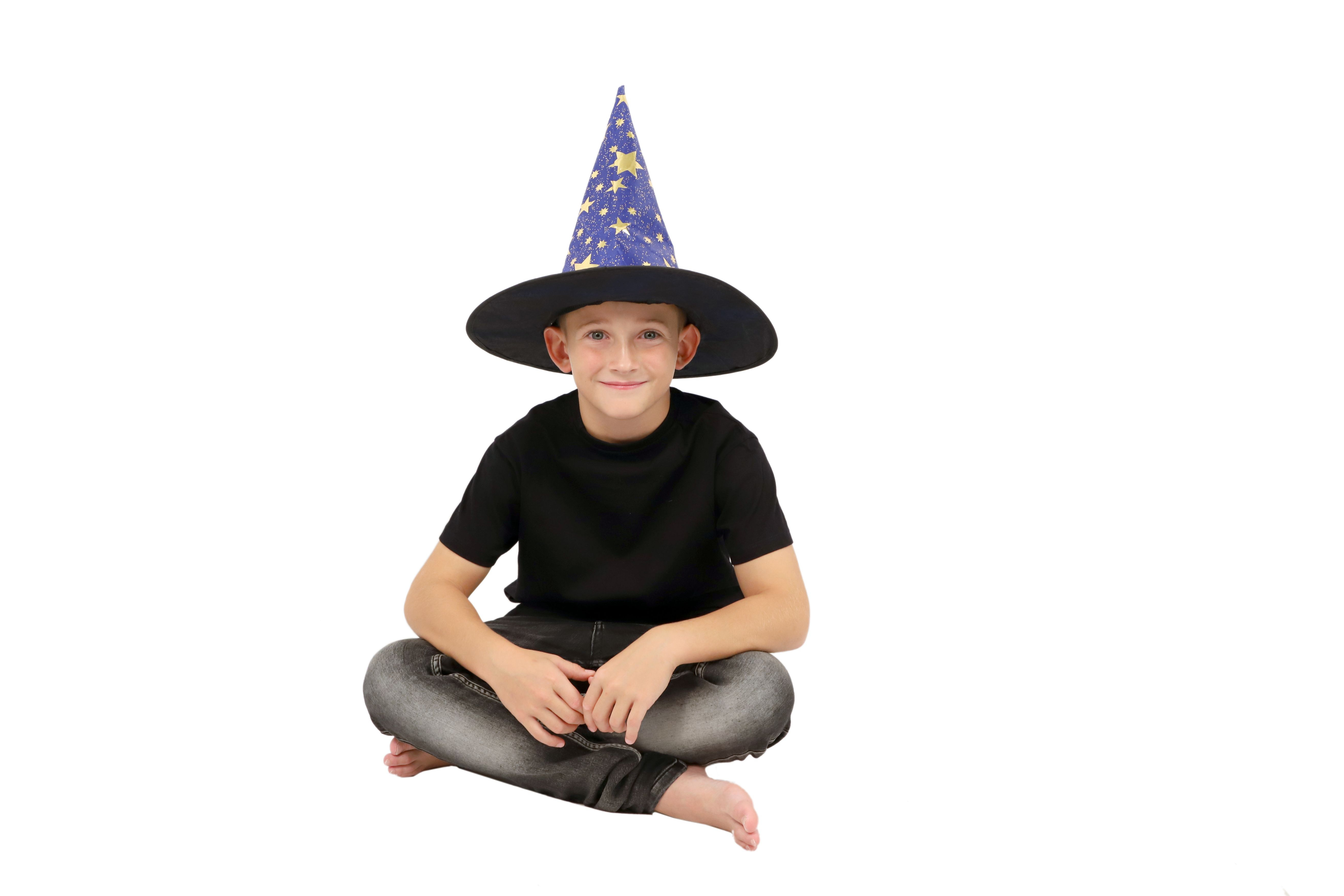 Dětský čarodějnický klobouk je inspirován světem kouzel a magie. Je modrý a zdobený zlatými hvězdami, které vzbuzují čarodějnický dojem. Děti si mohou hrát na kouzelníky a kouzelnice, zkoumat svět kouzel a vytvářet své vlastní příběhy plné dobrodružství a fantazie. Čarodějnické klobouky jsou oblíbenou součástí karnevalových a halloweenských kostýmů. Není hračka