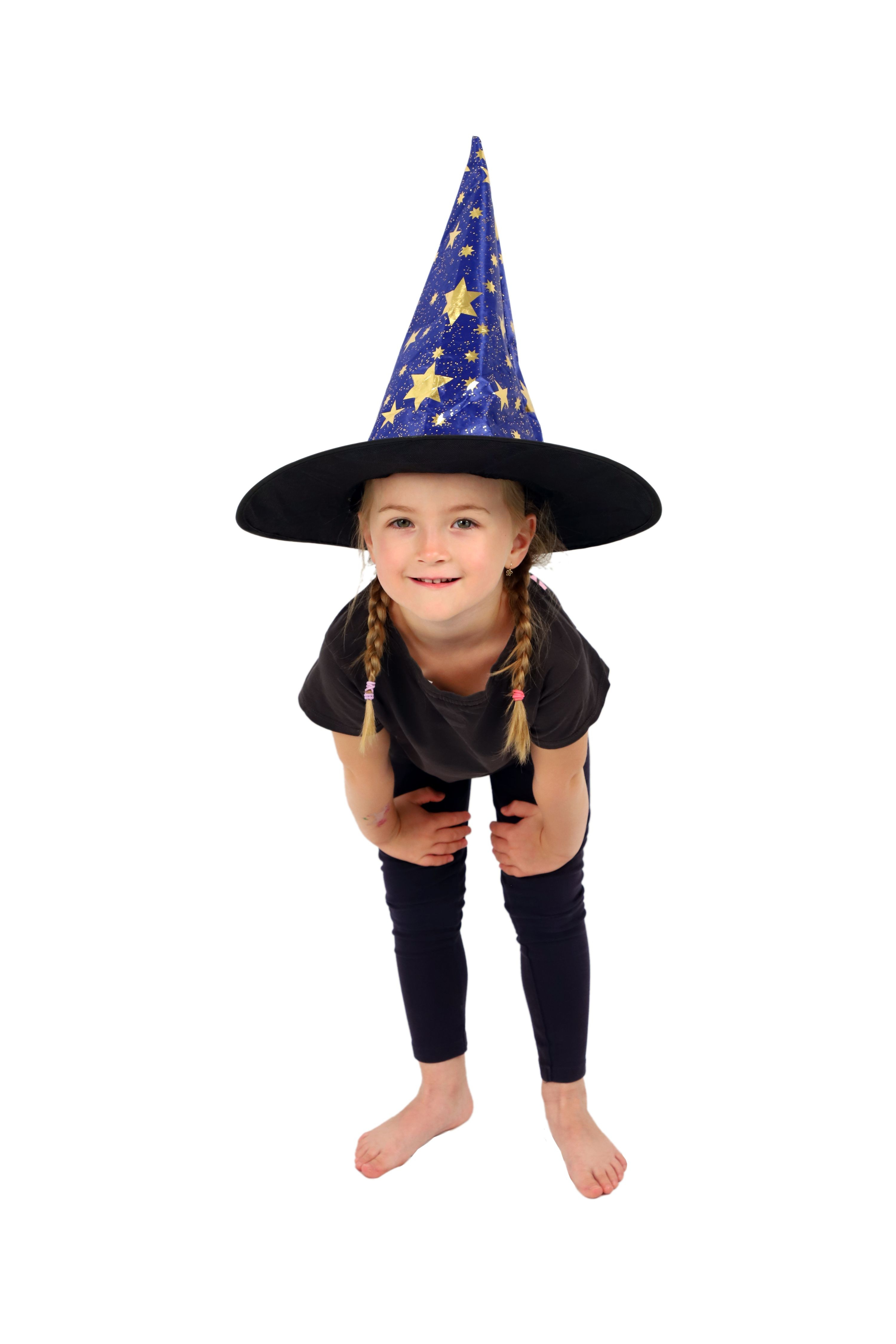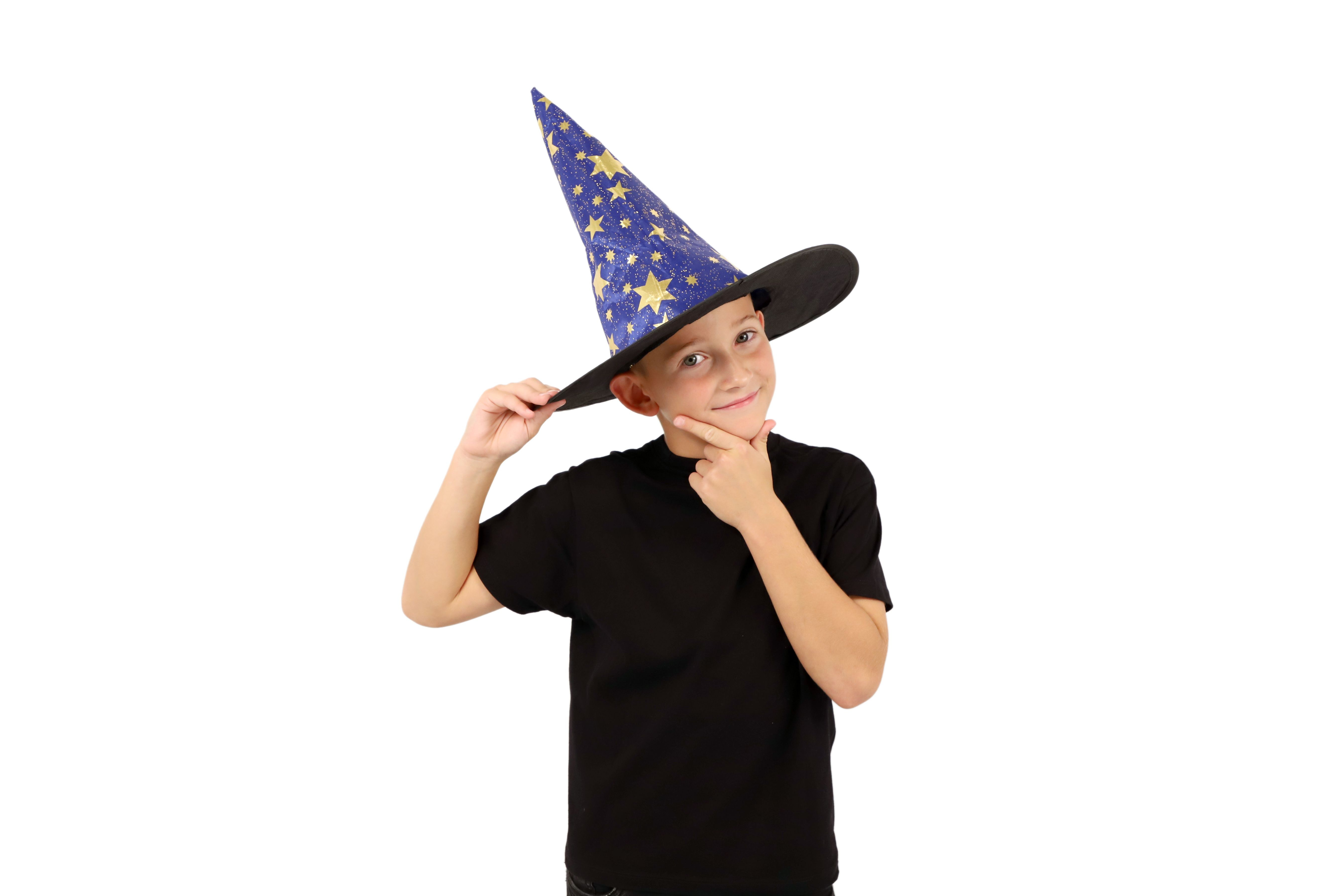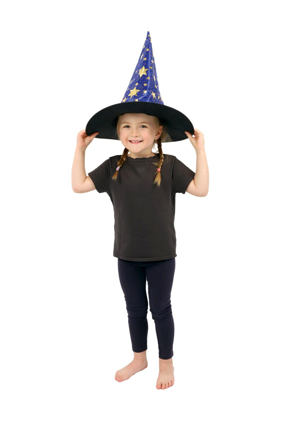 Dětský čarodějnický klobouk je inspirován světem kouzel a magie. Je modrý a zdobený zlatými hvězdami, které vzbuzují čarodějnický dojem. Děti si mohou hrát na kouzelníky a kouzelnice, zkoumat svět kouzel a vytvářet své vlastní příběhy plné dobrodružství a fantazie. Čarodějnické klobouky jsou oblíbenou součástí karnevalových a halloweenských kostýmů. Není hračka