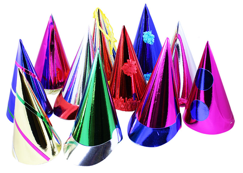 Barevné metalické papírové čepičky jsou senzačním doplňkem na oslavu, večírek nebo ples! Tyto kloboučky na gumičku nabízíme v různých barvách s kšiltem nebo krepatými střapečky.