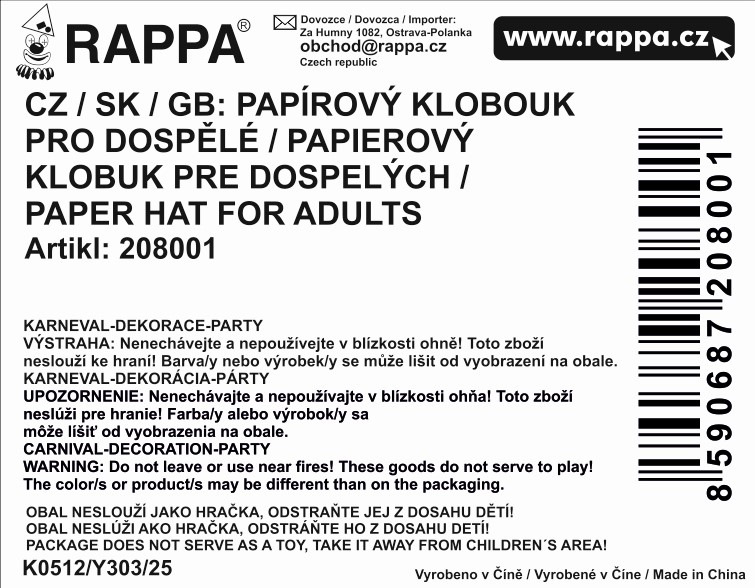 Rappa Klobouk s vlasy čarodějnice/Halloween