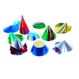 Barevné metalické papírové čepičky jsou senzačním doplňkem na oslavu, večírek nebo ples! Tyto kloboučky na gumičku nabízíme v různých barvách a provedeních. Prodejné pouze v balení po 25 kusech.