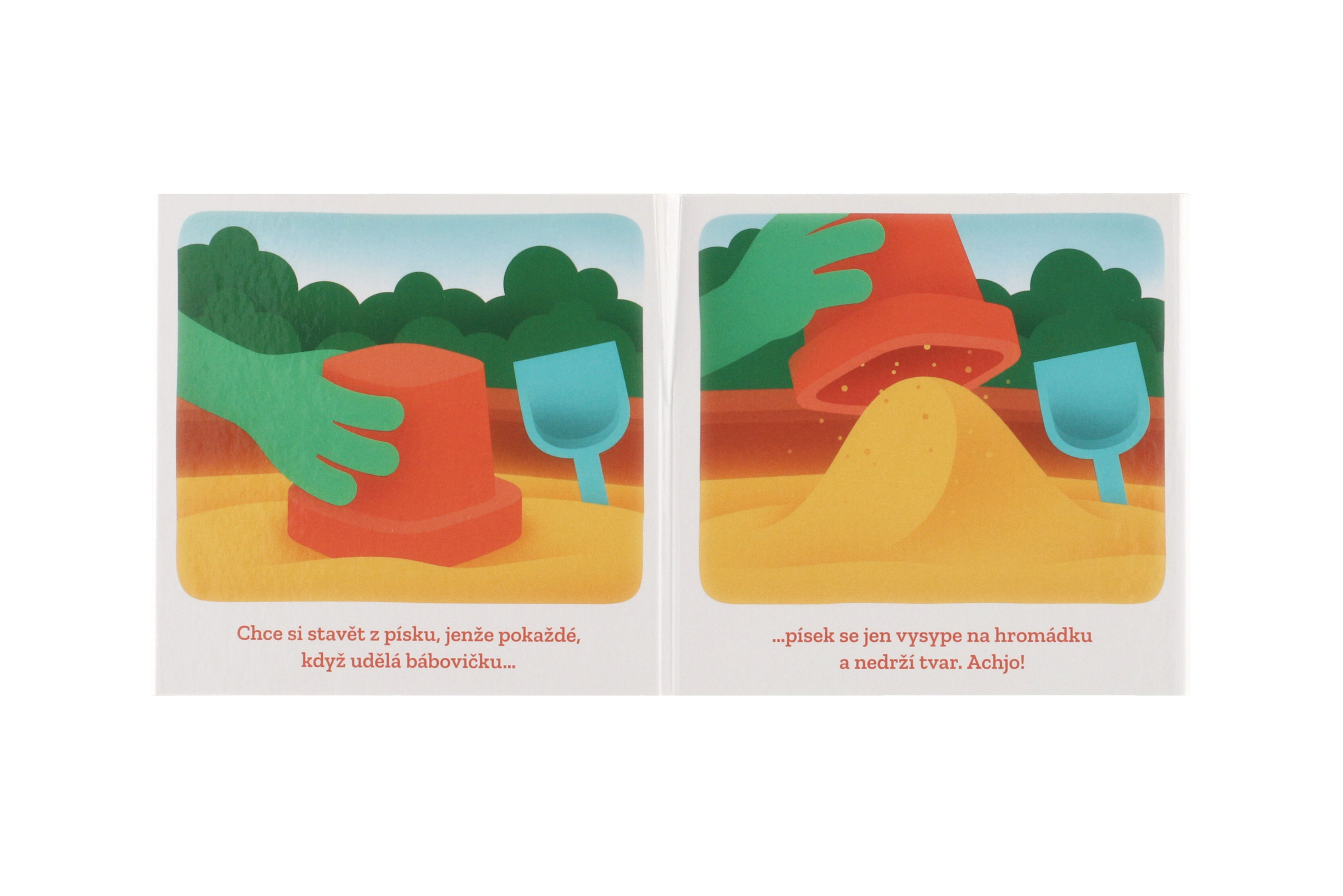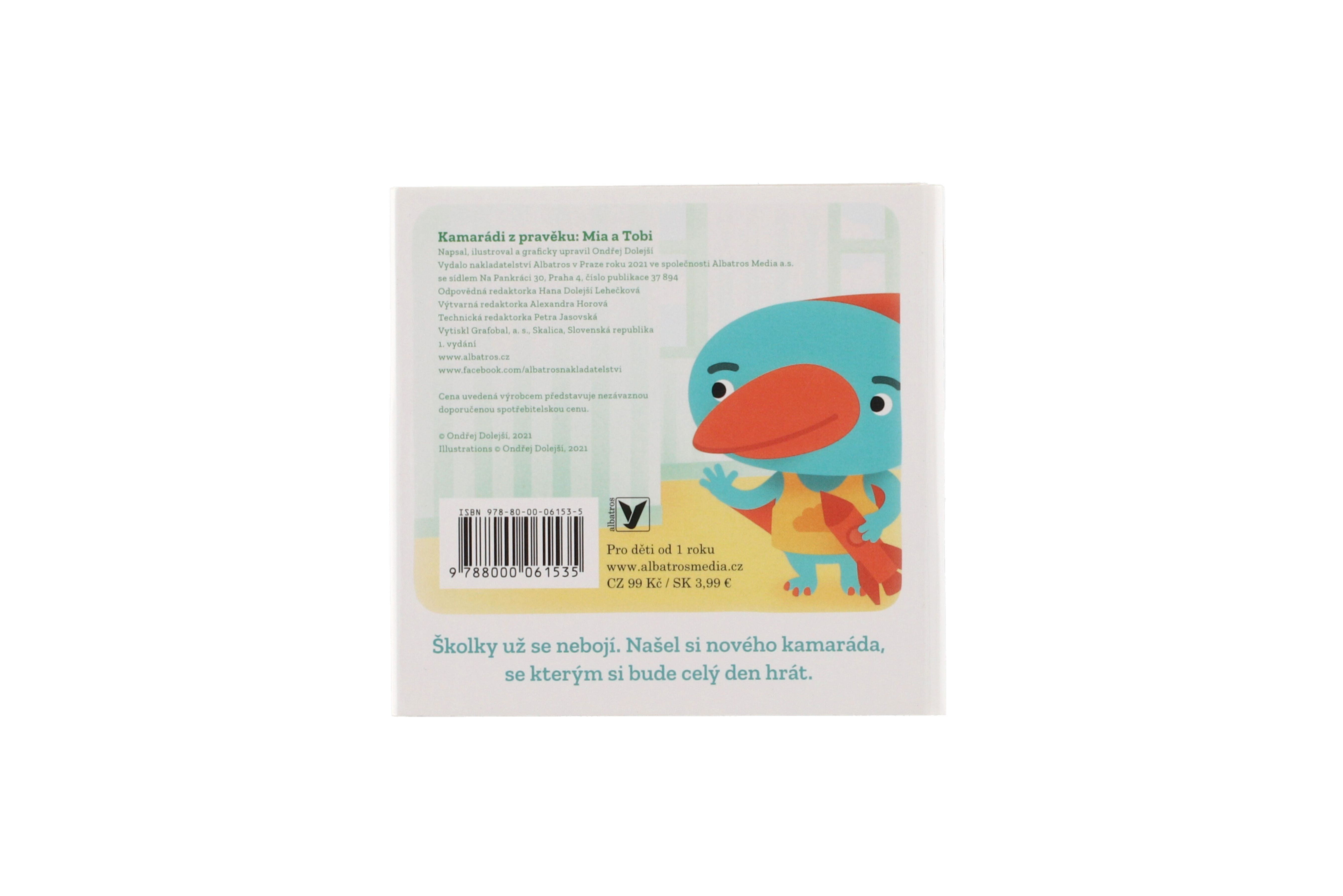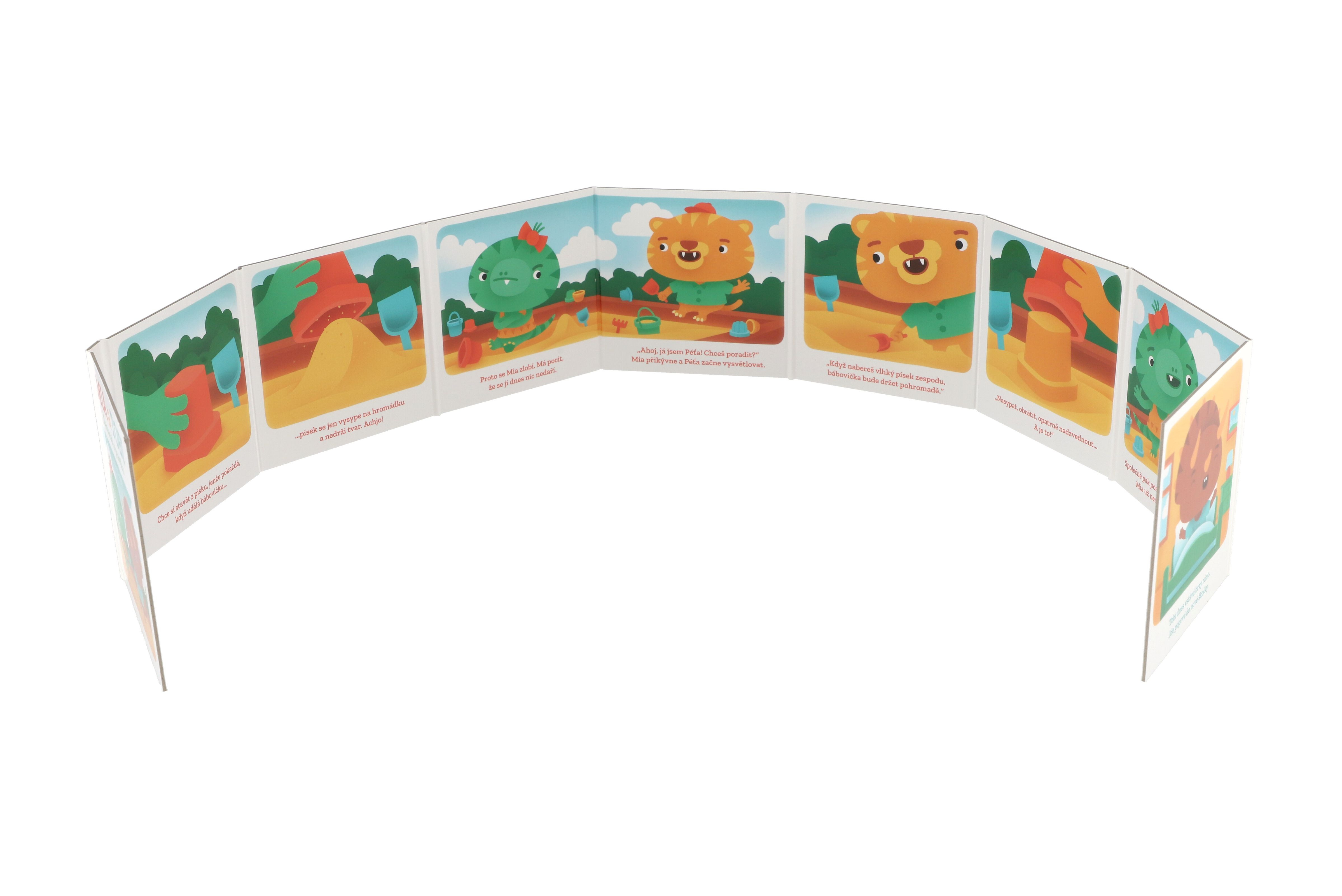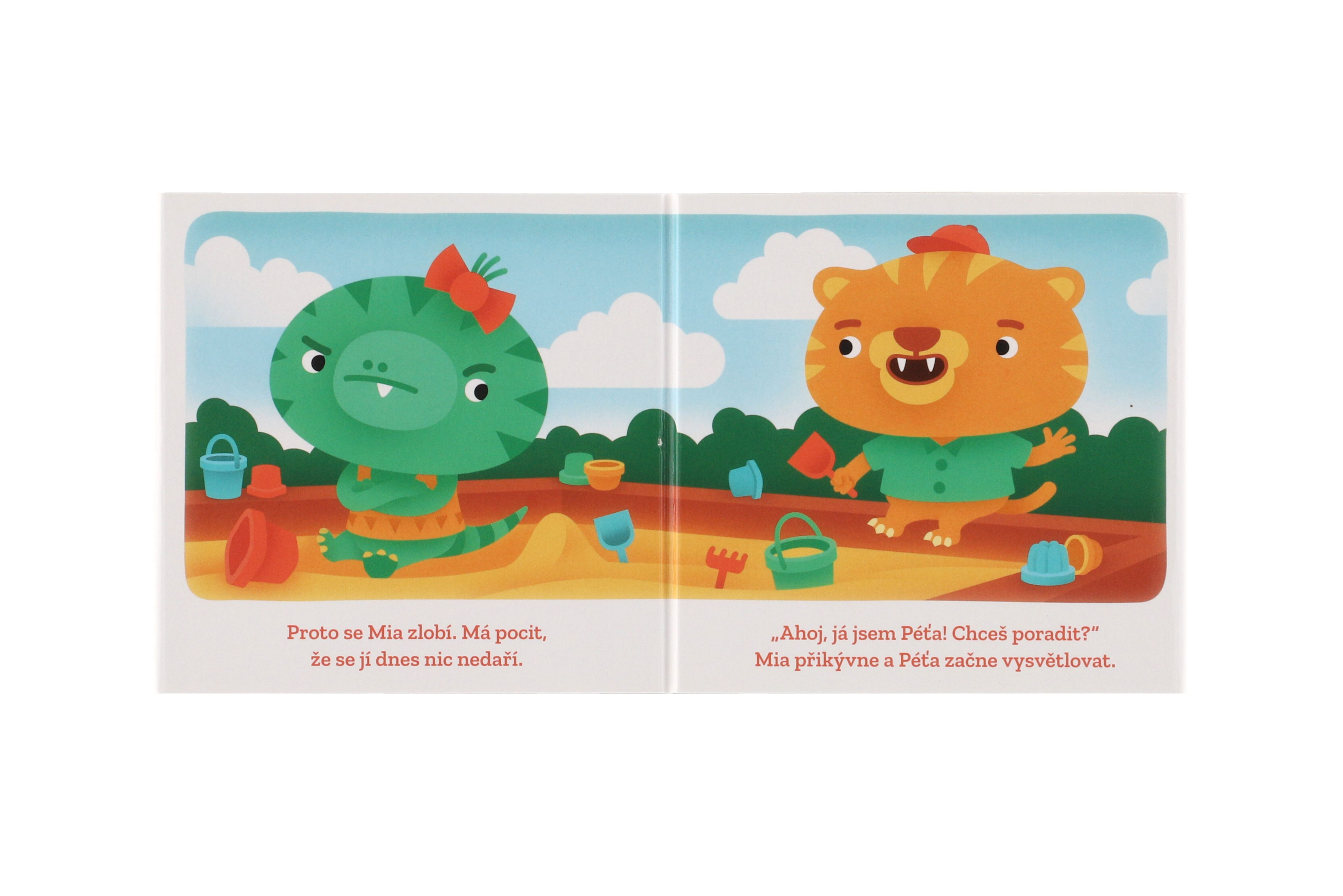 Roztomilé leporelo pro nejmenší lidská mláďata. Tobi jde poprvé do školky a stydí se. Mia je na pískovišti, nejde jí udělat bábovka, a moc se zlobí. Malí dinosauři zažívají stejné problémy a situace, s nimiž se musí čas od času popasovat i všechna lidská mláďata: bojí se, stydí se, jsou smutné, cítí vztek anebo se jim třeba vůbec nic nechce. První ze série autorských leporel Kamarádi z pravěku o emocích a sociálních interakcích. Pro děti od 1 roku.