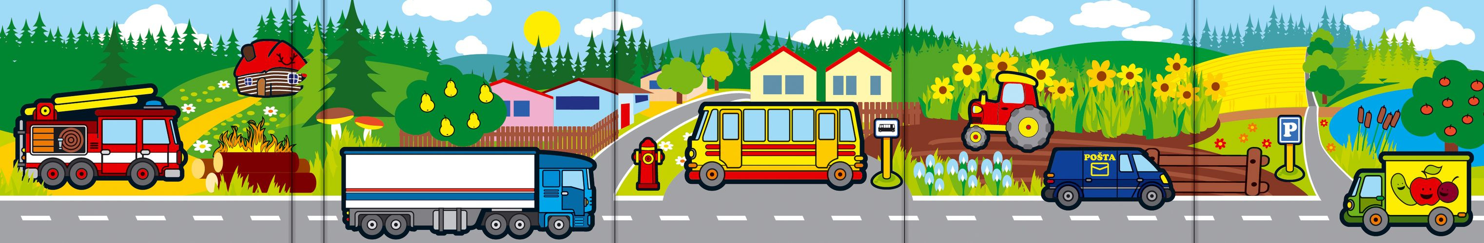 Leporelo pro malé děti s obrázky aut, ve kterém se seznámí s auty jezdícími na silnici. S leporelem plným obrázků se okolní svět stane předmětem jejich zájmu a učení nových slov pro ně bude hrou.