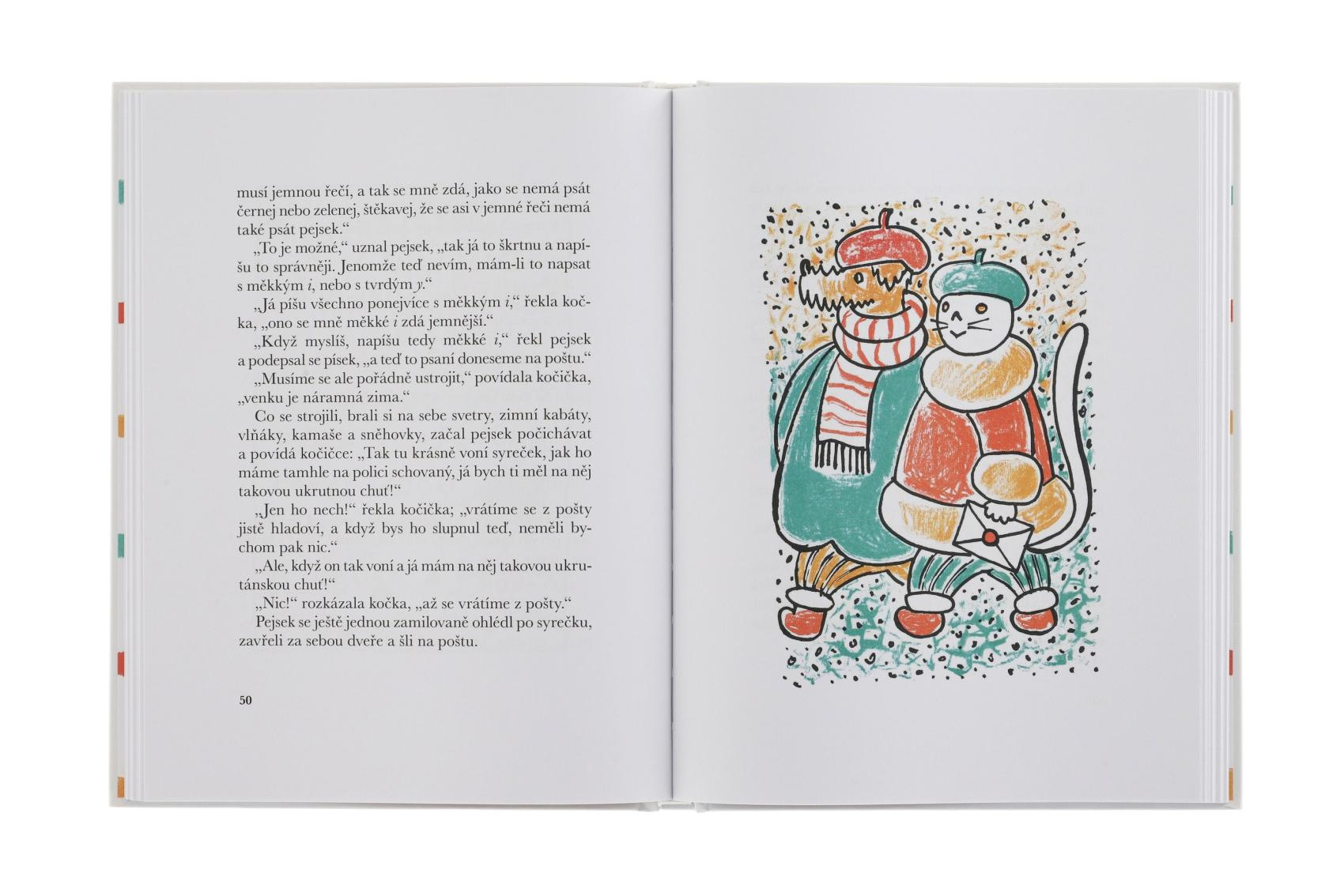 Nesmrtelná knížka Josefa Čapka. Veselá vyprávění o dvou nerozlučných kamarádech potěšila již několik generací čtenářů. Pejsek a kočička spolu hospodaří ve svém domku jako lidé: myjí podlahu, pečou dort, slaví Vánoce i 28. říjen, chodí na výlety a navštěvují přátele. Jejich příhody jsou proloženy krátkými poetickými pohádkami. Autorův laskavý humor, kterým si bere na mušku drobné dětské nectnosti, jeho vcítění do dětského myšlení a krásný vroucný jazyk tvoří tuto milou knížku nesmrtelnou.