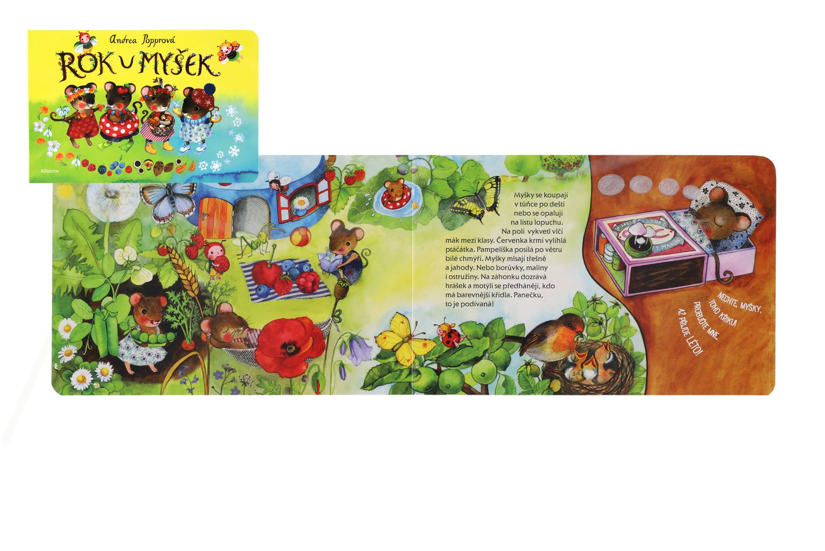 Co prožívají čtyři myšky během jednoho roku? V zimě většinou spí, jedna má postýlku z plechovky od sardinek, druhá z krabičky od sirek, třetí ze slaměných stébel, čtvrtá z bačkorky. Na jaře myšky vyskočí, pracují na zahrádce, v létě se koupají, mlsají ovoce, na podzim sklízejí záhonky a připravují se na zimu. Ale to jistě není všechno. V bohatě ilustrovaném leporelu toho objevíte mnohem víc! Velikost knihy: 24 x 16 cm Vhodné pro děti od 3 let