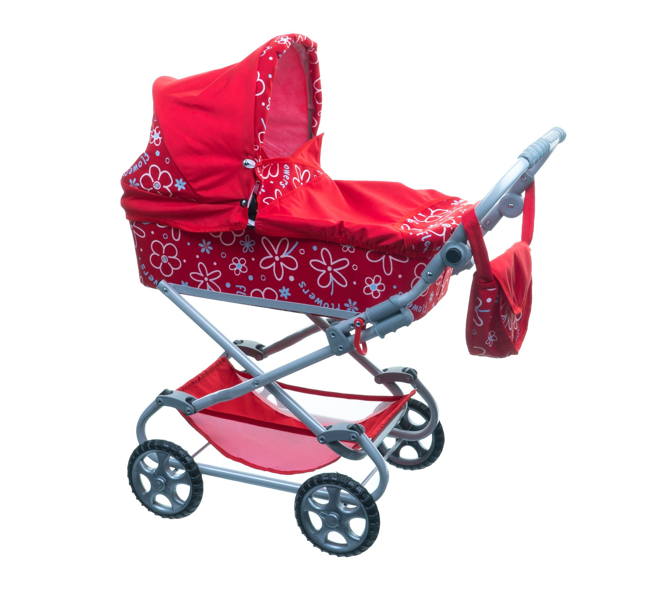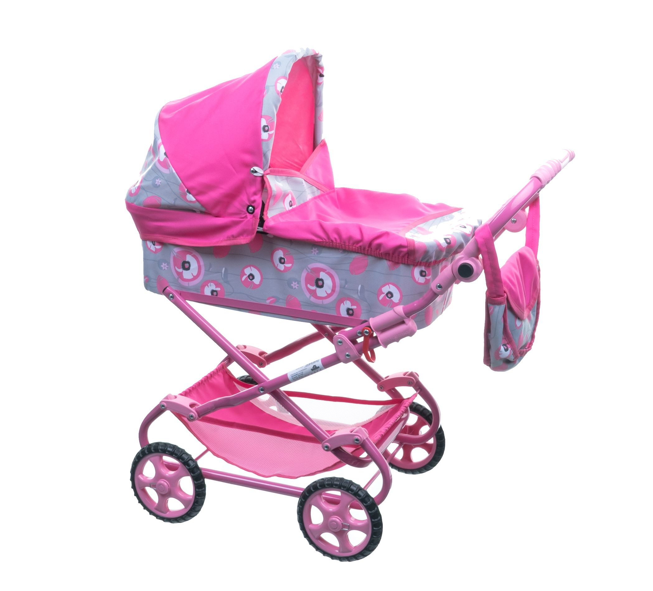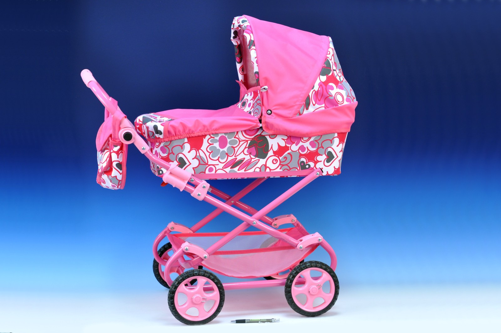 Moderní kočárek pro panenky s hlubokou vaničkou. Lehká kovová konstrukce je doplněna většími koly, které ulehčují jízdu s kočárkem. Hluboká vanička je kryta nánožníkem, rukojeť s možností výškového nastavení. Součástí je také košík a přebalovací taška. Rozměr vaničky 60 x 30 cm výška rukojeti max. 74 cm. Rozměry kočárku: v. 87 x š. 38 x d. 77 cm. Vhodný od 3 let.