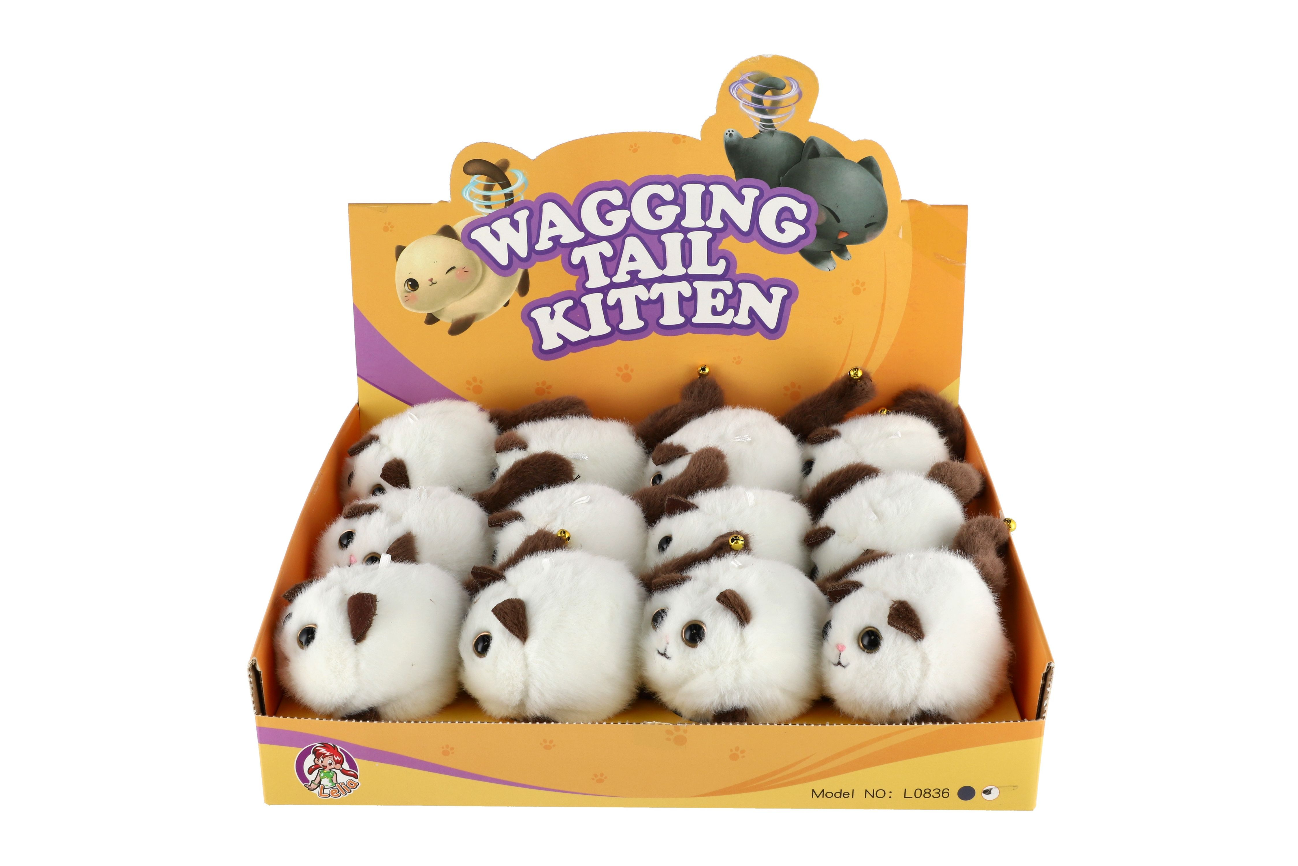 Natáhněte provázek umístěný na kočičce, po natažení se kočičce točí ocásek. Na konci ocásku má malou rolničku. Rozměr kočičky: 10 cm Vhodné pro děti od 3 let