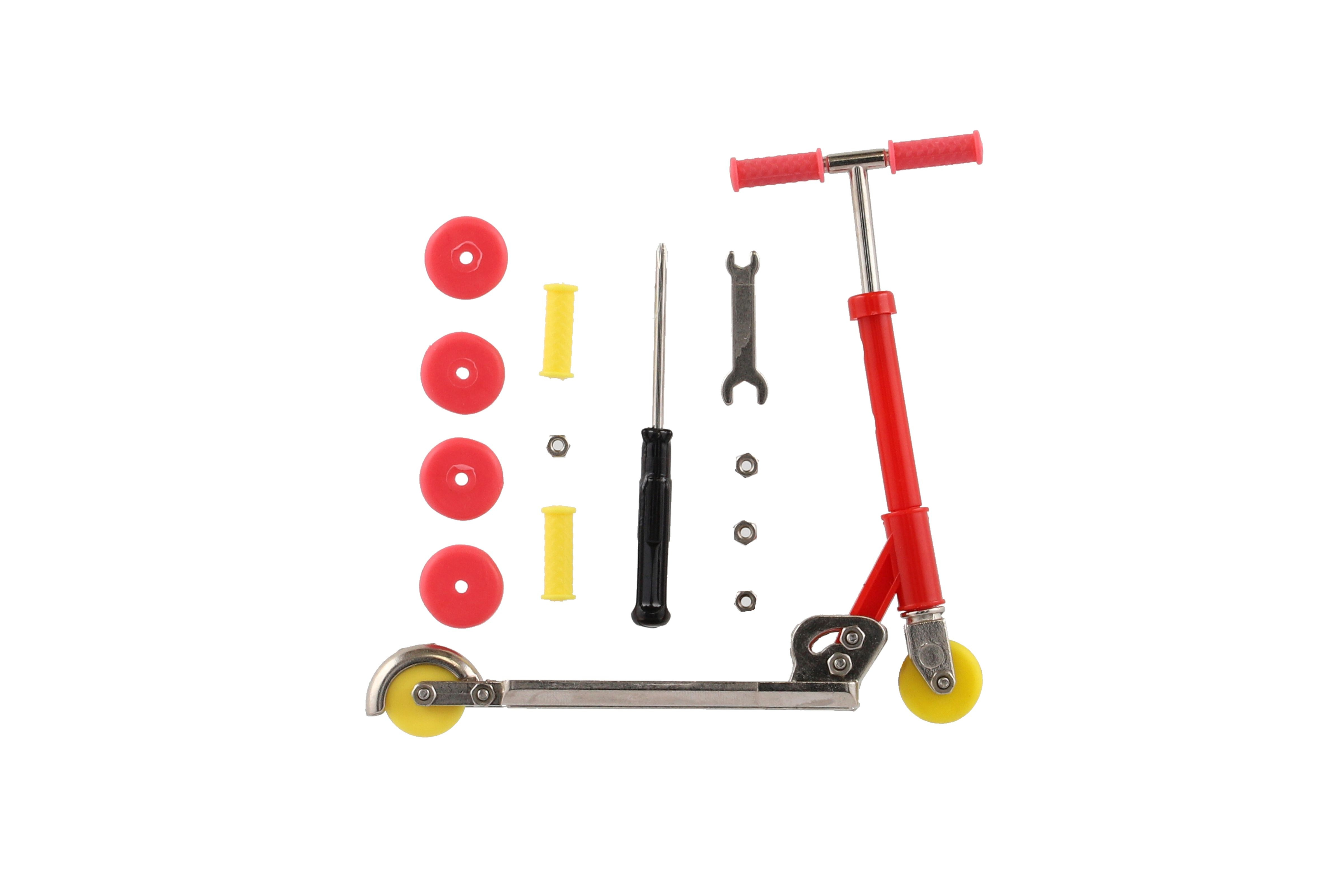 S mini koloběžkou si mohou děti hrát celé hodiny. Mohou se s ní naučit různé triky a skvěle si procvičí motoriku a koordinaci prstů. Mohou si změnit vzhled koloběžky výměnou koleček a madel na řidítka. V sadě najdete vše potřebné včetně šroubováku. Rozměr koloběžky: 10 cm Vhodné od 3 let