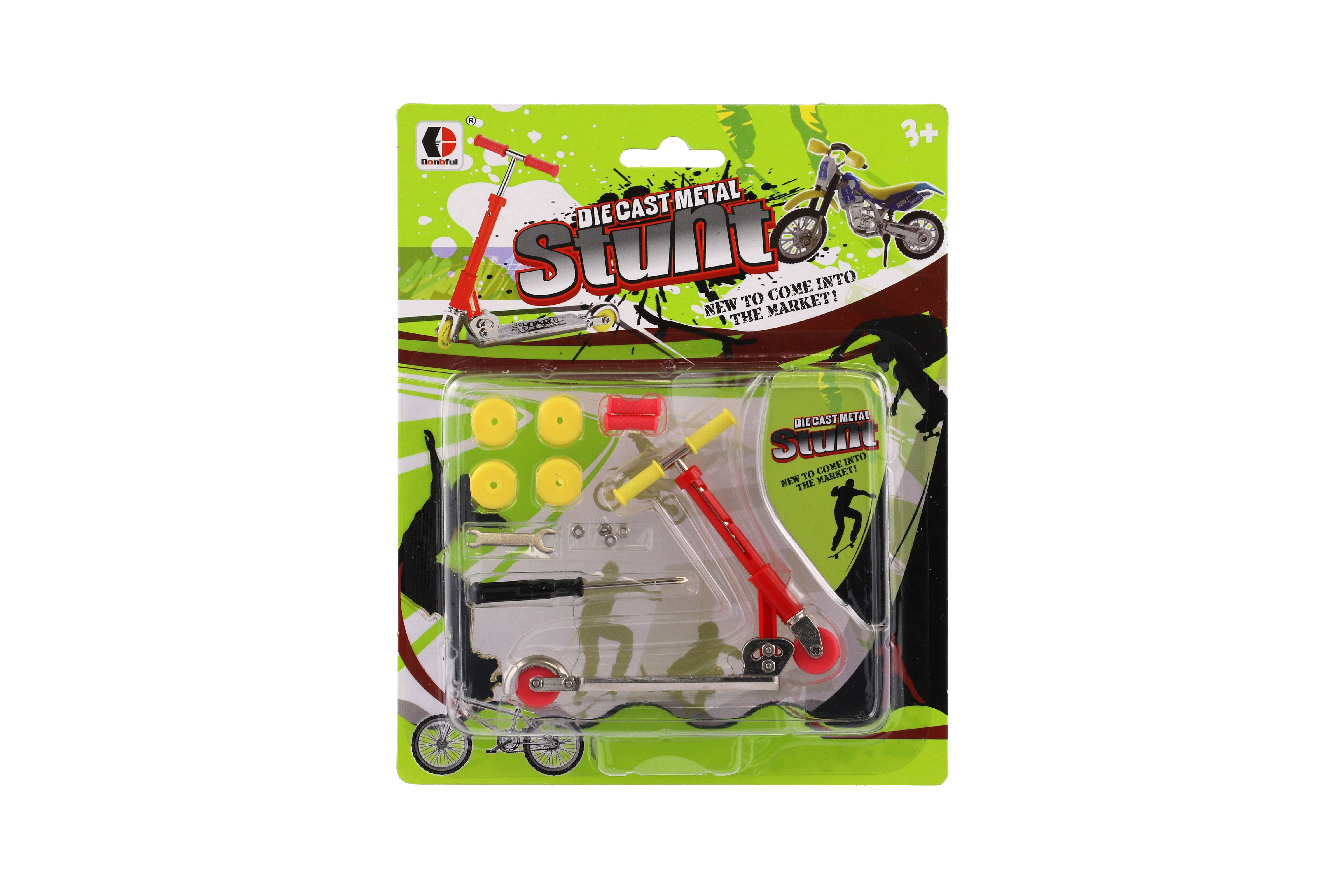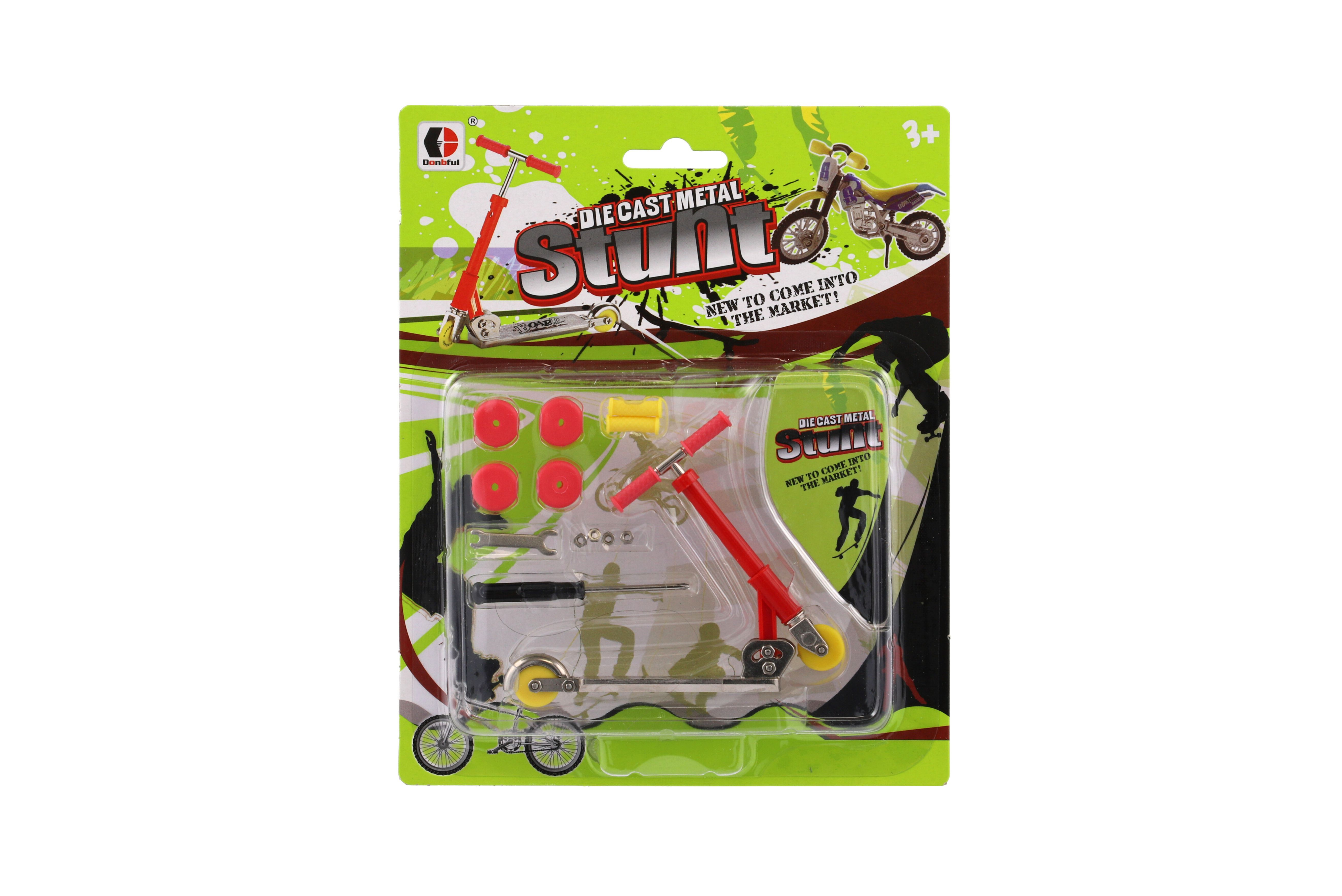 Popis Koloběžka prstová kov/plast 10cm s doplňky 2 barvy na kartě