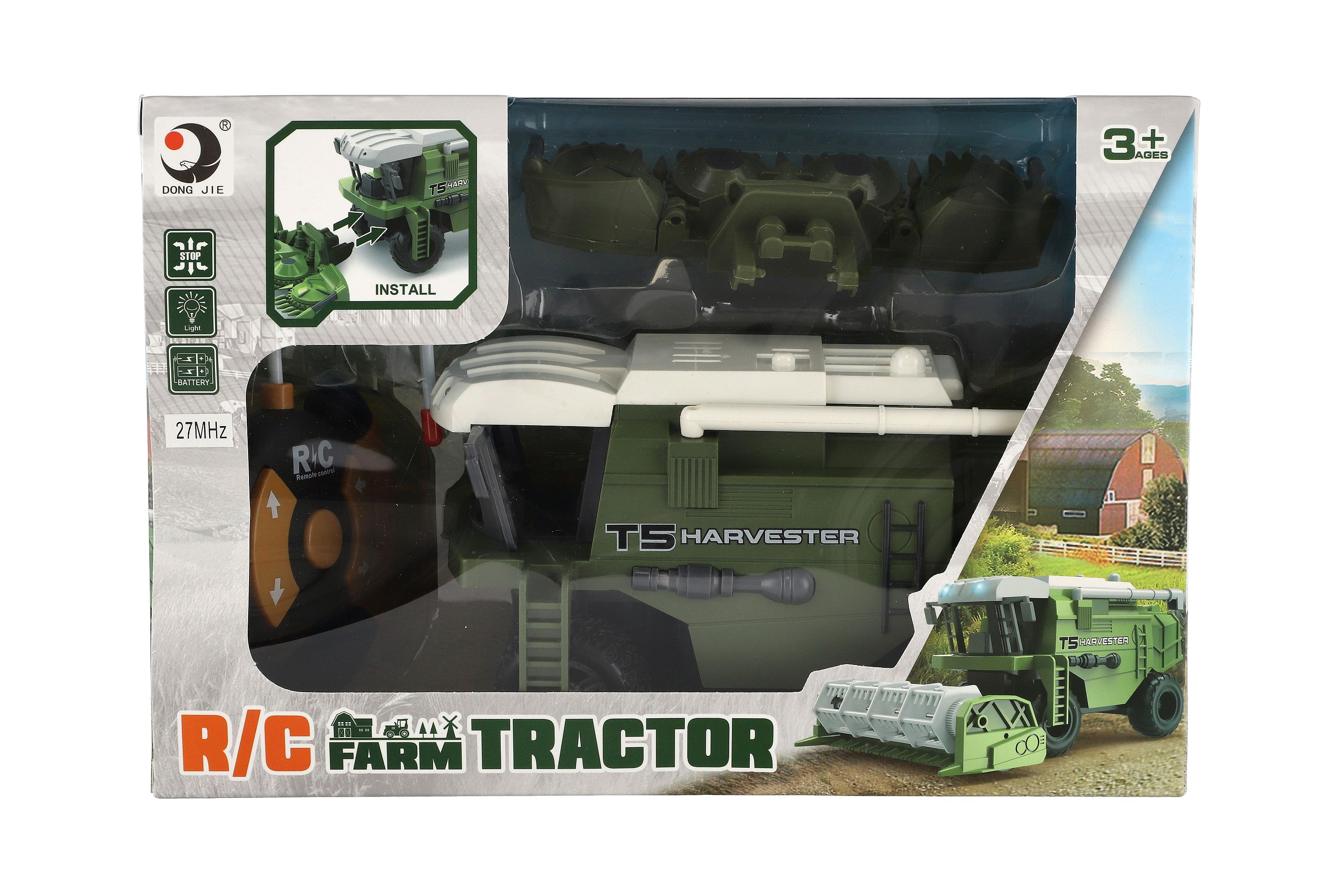 Kombajn RC plast 22cm 27MHz na baterie se světlem v krabici 30x21x12cm