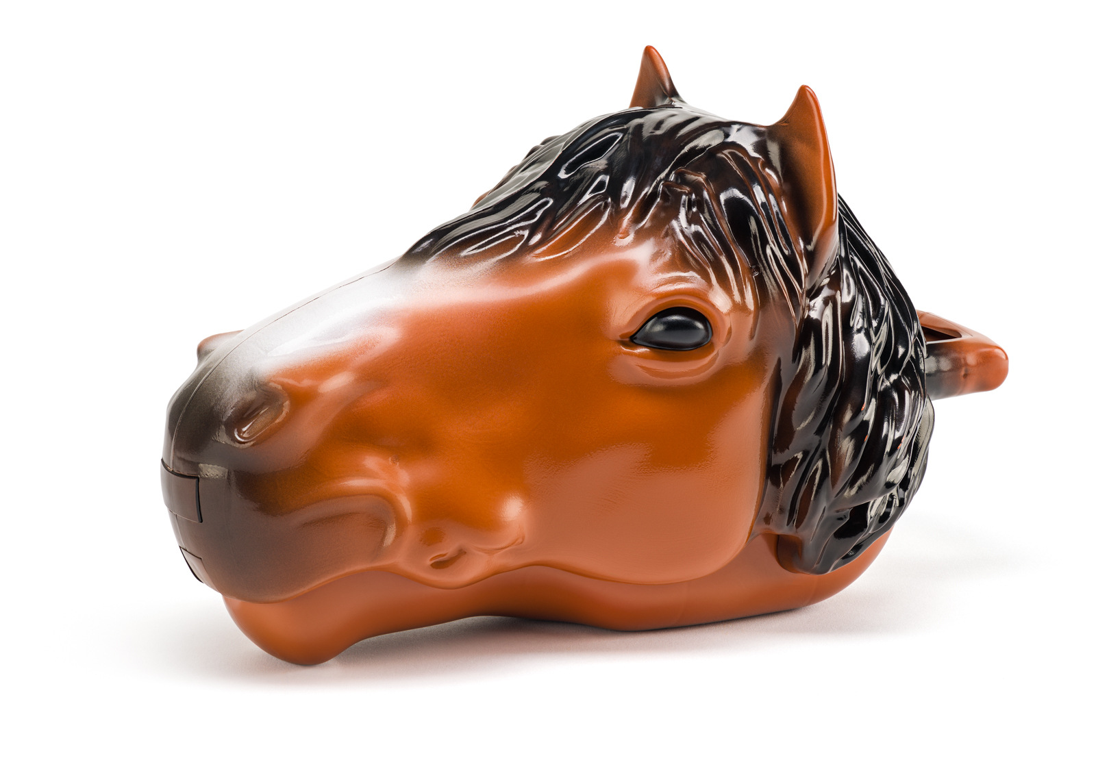 Vydejte se na ranč s úžasnou koňskou hlavou, která v sobě ukrývá figurky pro všechny malé milovníky koní. Koňská hlava slouží jako praktický úložný box – pojme všechny figurky a díky madlu ji děti snadno kamkoliv přenesou. Stačí stisknout tlačítko pod čumákem a tlama se otevře – hra může začít! Díky click systému lze tlamu otevřít v několika úhlech. Uvnitř se skrývá sada šesti koní v různých barvách. Celý set je zabalen v open boxu s vnitřním potiskem pastvin, který lze využít jako součást hry nebo jako originální výstavní dekoraci. Obsah sady: 1x koňská hlava, 1x černý kůň, 1x tmavě hnědý kůň, 1x hnědý kůň, 1 x achaltekinský kůň, 1x béžový kůň, 1 x kůň grošák. Vyrobeno z kvalitního plastu. Rozměry hlavy: 18,5 x 18 x 31 cm. Rozměry figurky: 9 x 3 x 9,5 cm. Rozměry balení: 22 x 32 x 19 cm. Nevhodné pro děti do 3 let. Věk: 3+