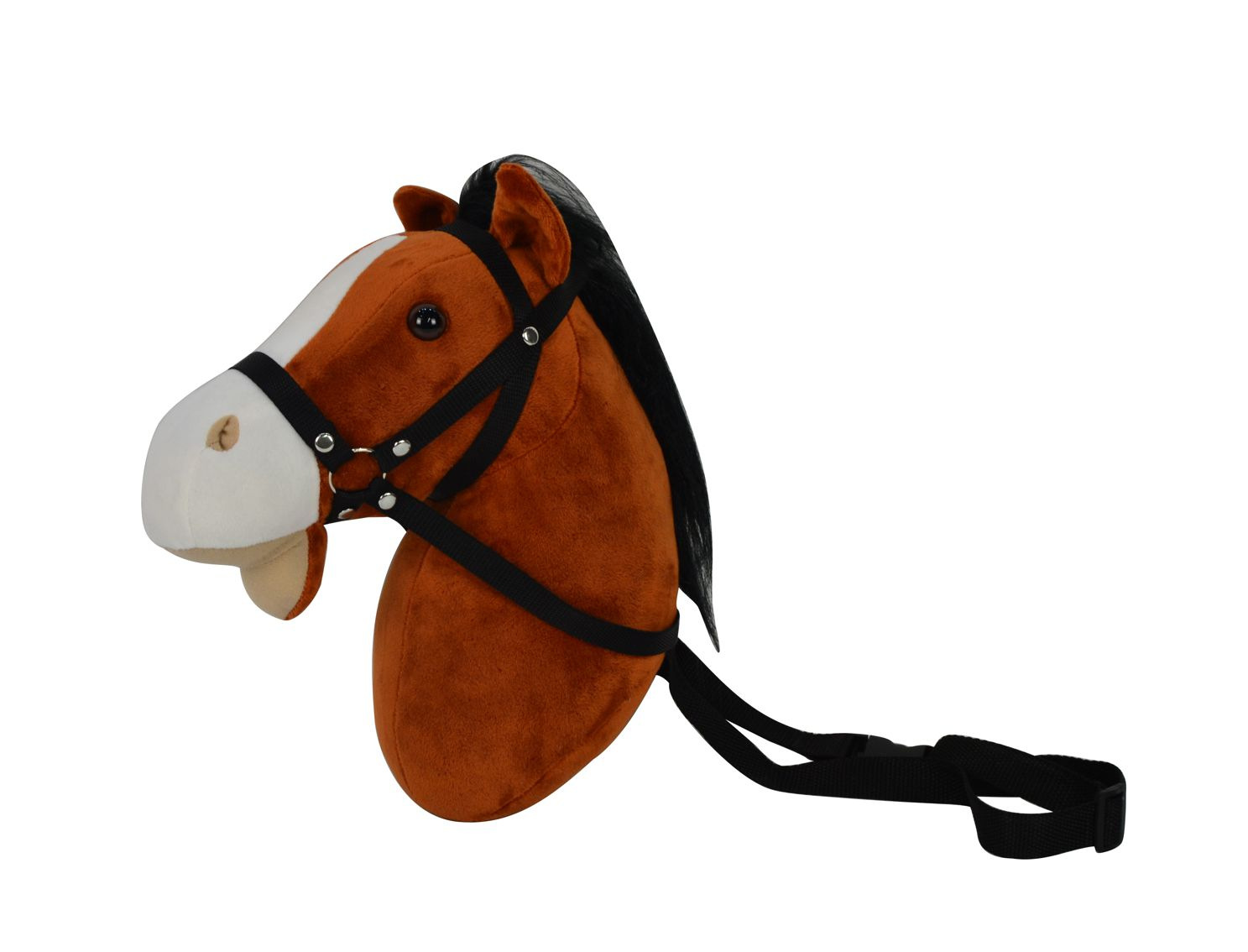 Popis Koňská hlava s popruhem plyš 30cm se zvukem tmavě hnědý s obalem v sáčku