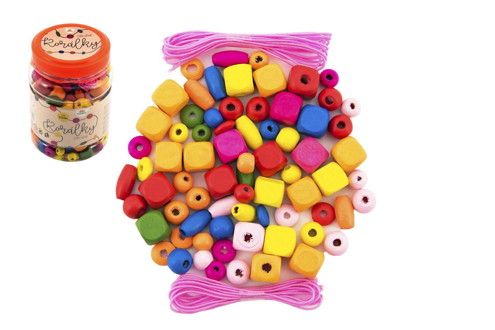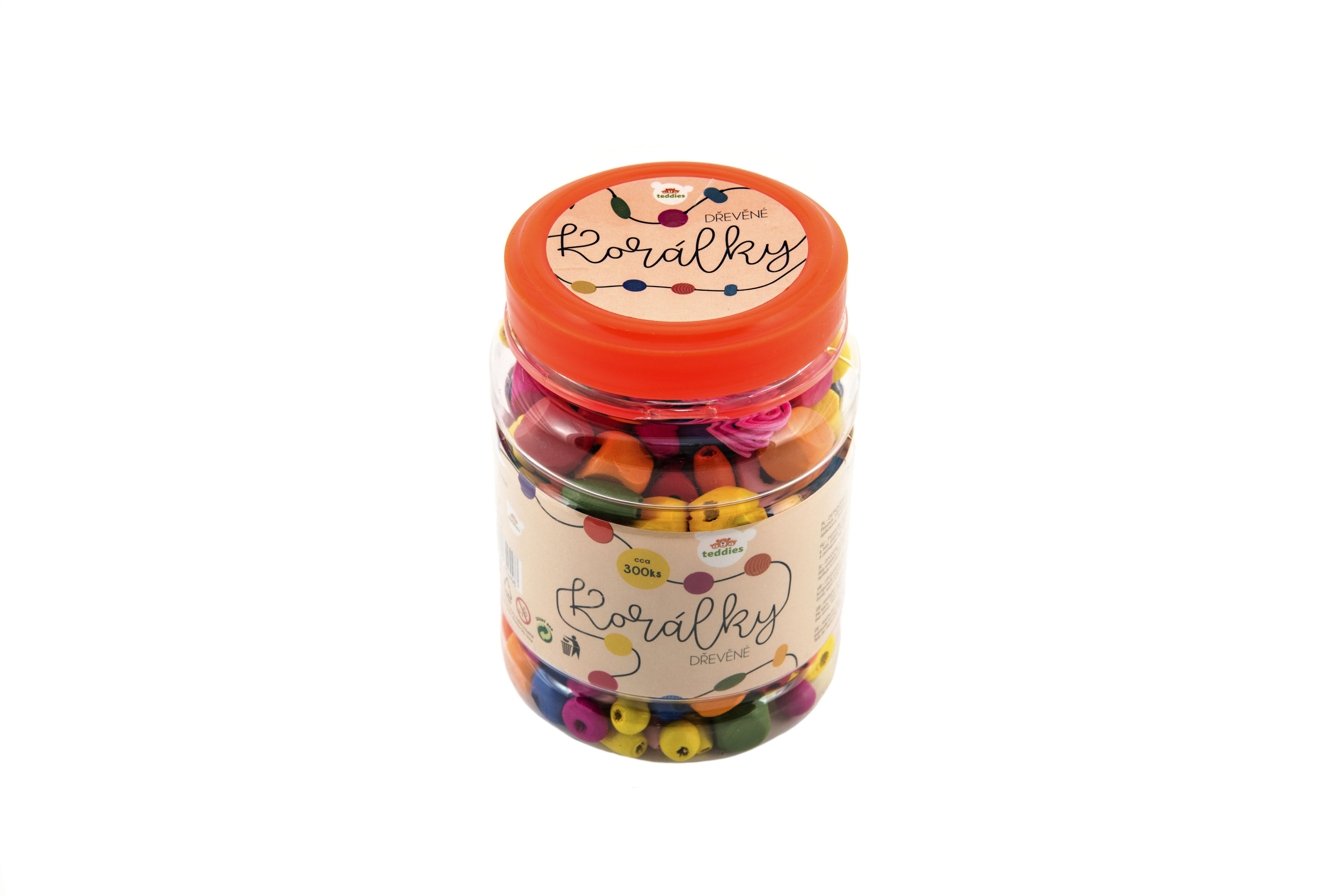 Dětské barevné korálky pro malé parádnice a nejen pro ně. V sadě najdete různé druhy a tvary korálků, které mají pestré a veselé barvy. Součástí jsou gumičky, na které si děti mohou navlékat korálky dle své fantazie, náramky a řetízky, které jsou poté roztahovací. Vzniknou tak jedinečné módní doplňky. Plastová dóza obsahuje cca 300 ks korálků. Dřevěné korálky jsou vhodnou hračkou pro rozvoj dětské motoriky, trpělivosti i fantazie. Rozměry balení 7 x 11 x 7 cm. Vhodné pro děti od 3 let.