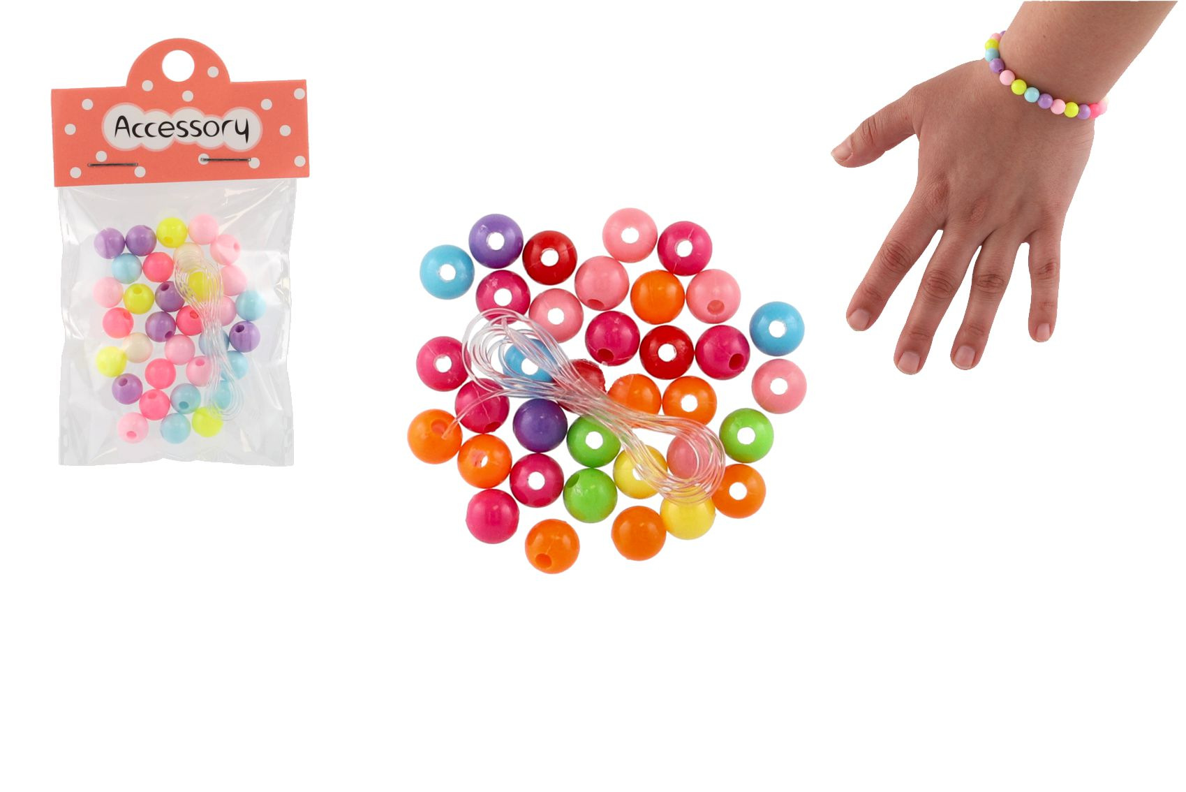 Teddies Korálky plastové barevné se šňůrkou 2 barvy v sáčku 6,5x11x1cm