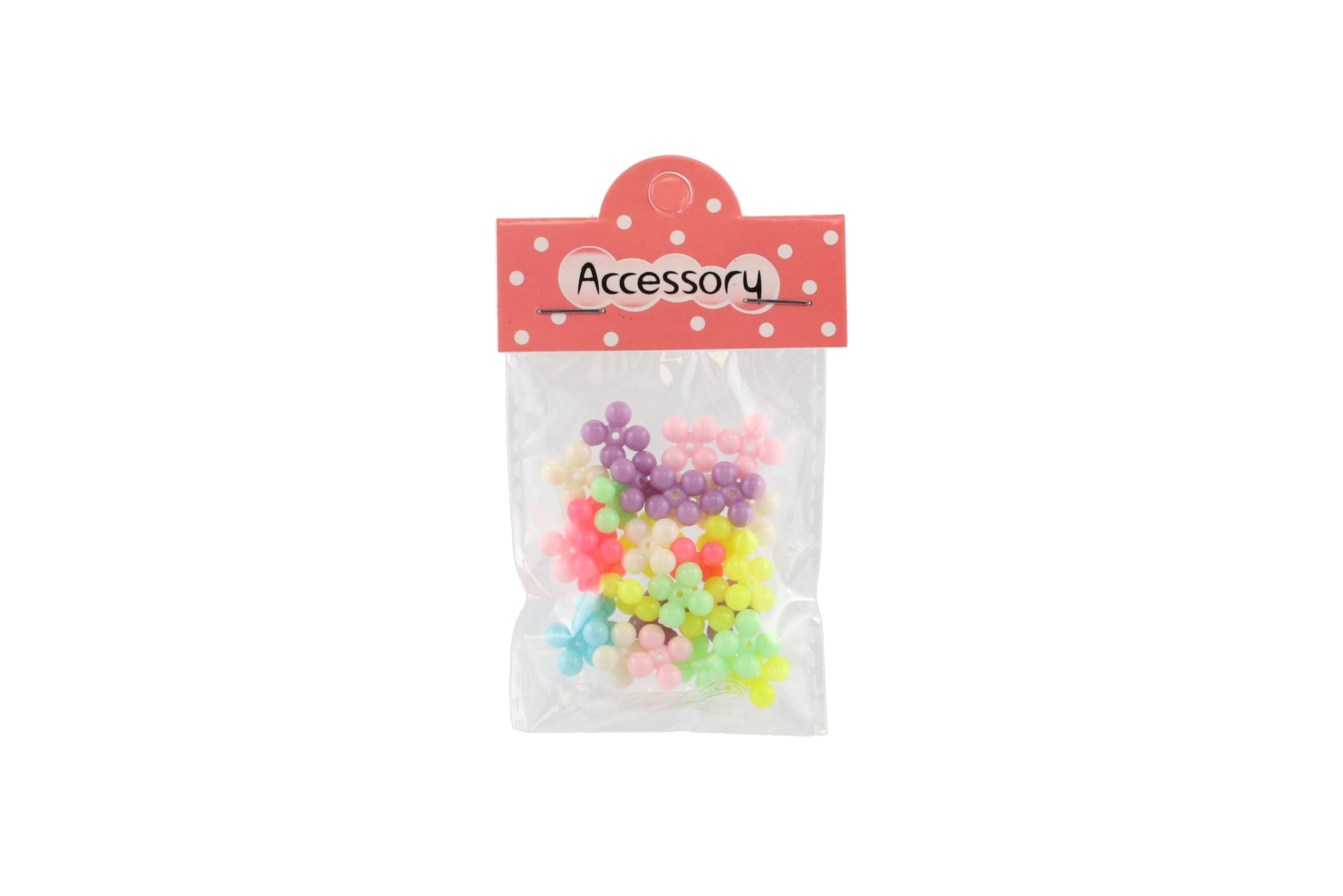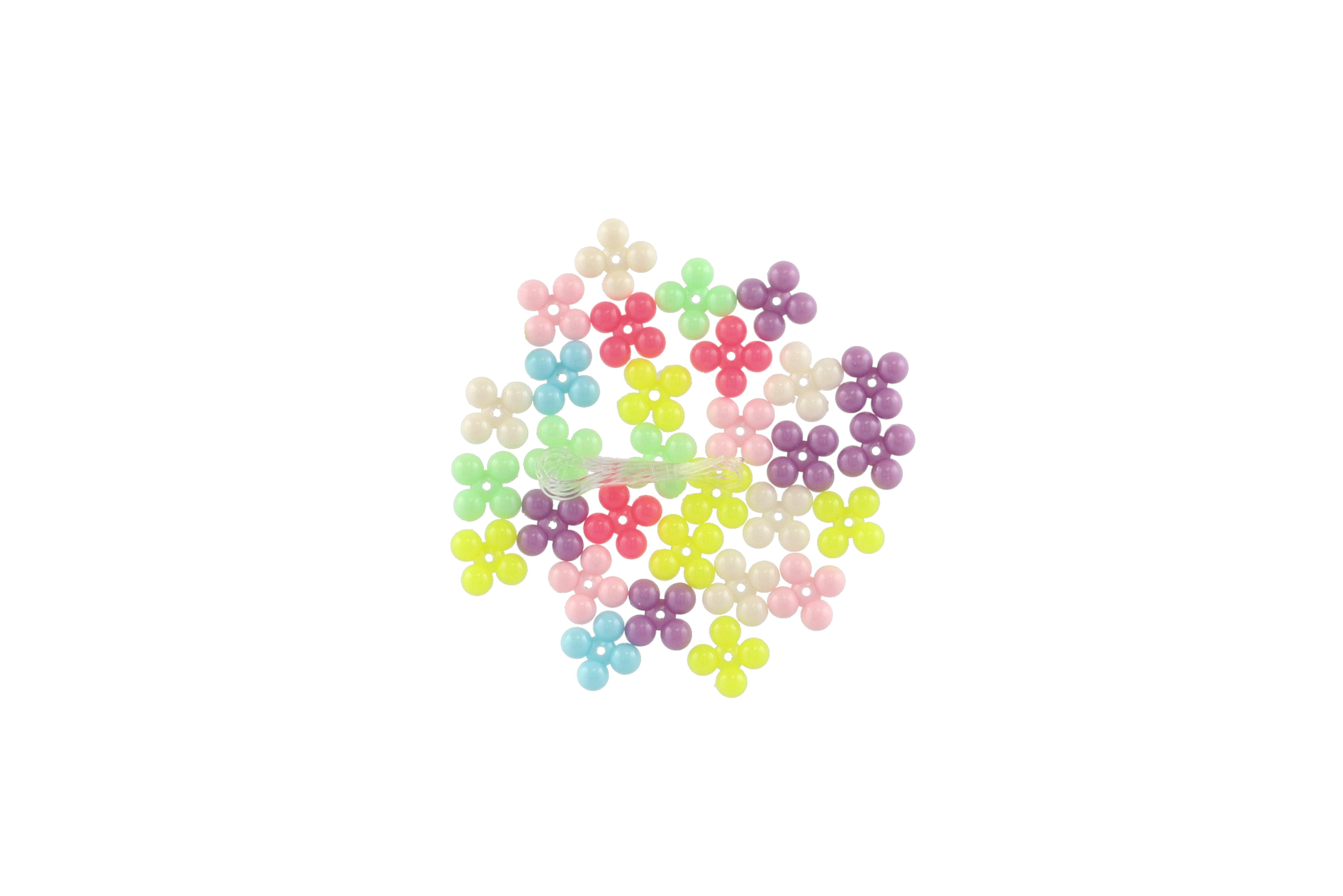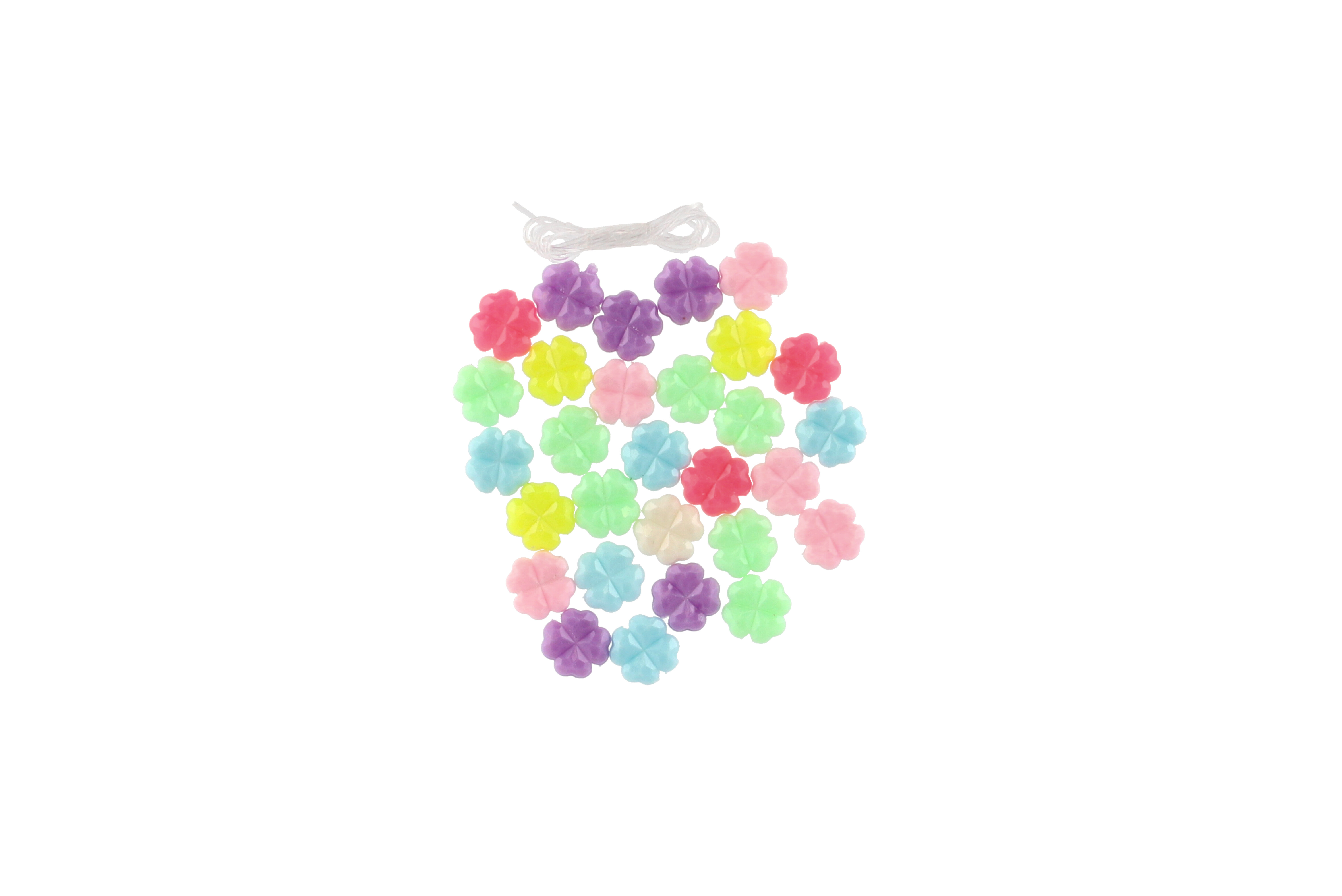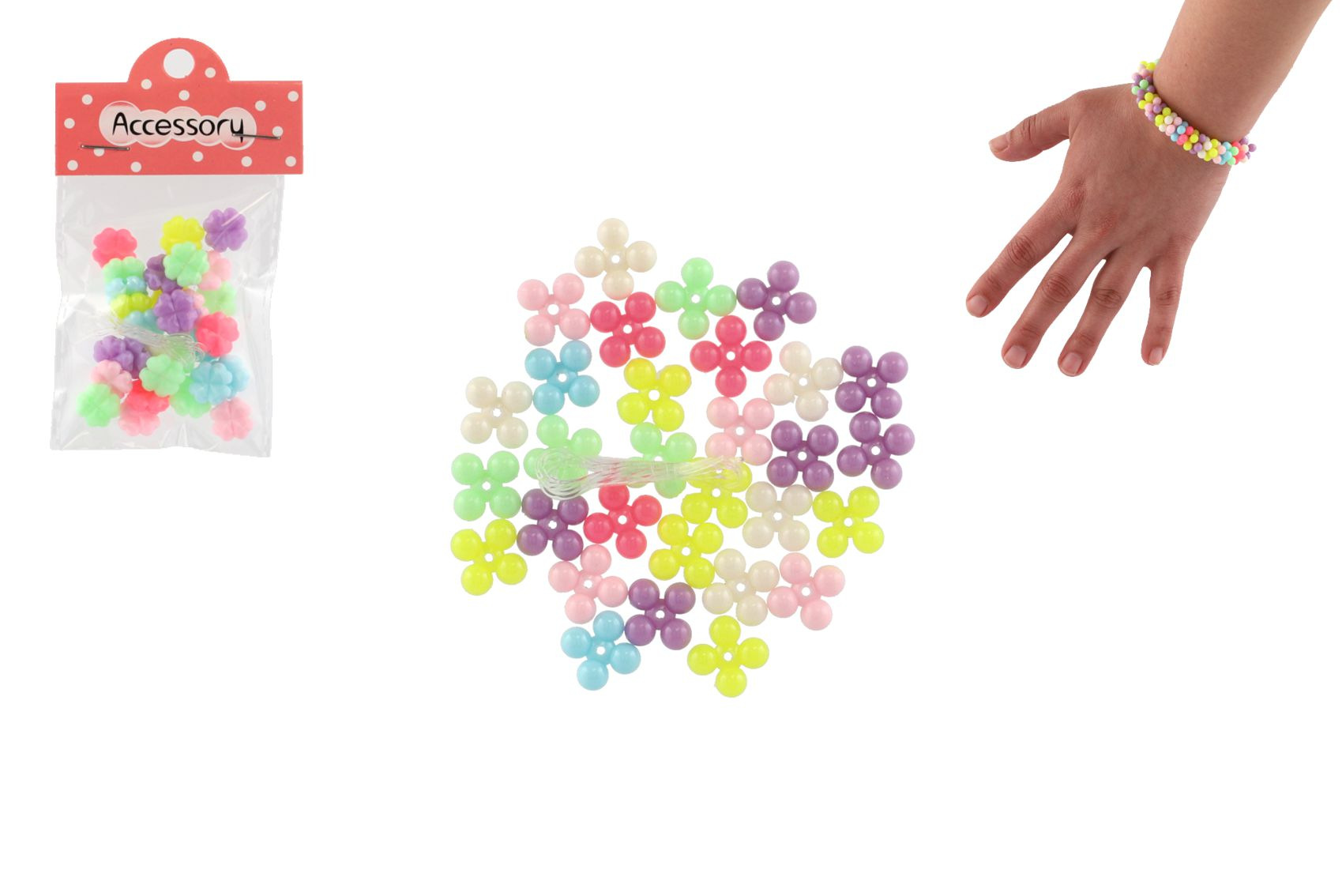 Teddies Korálky plastové kytičky, čtyřlístky se šňůrkou 2 druhy v sáčku 6,5x11x1cm