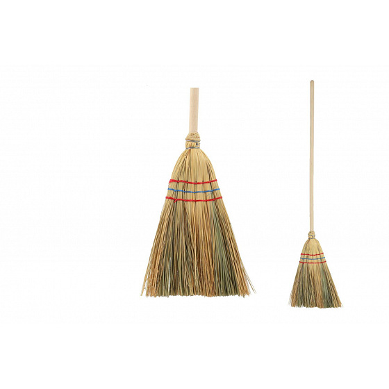 Koště je vyrobeno z přírodního čiroku a má pevnou dřevěnou násadu. Husté štětiny dobře zametají prach, drobky i lehké nečistoty. Skvělé pro hru na domácnost i skutečné pomáhání rodičům.