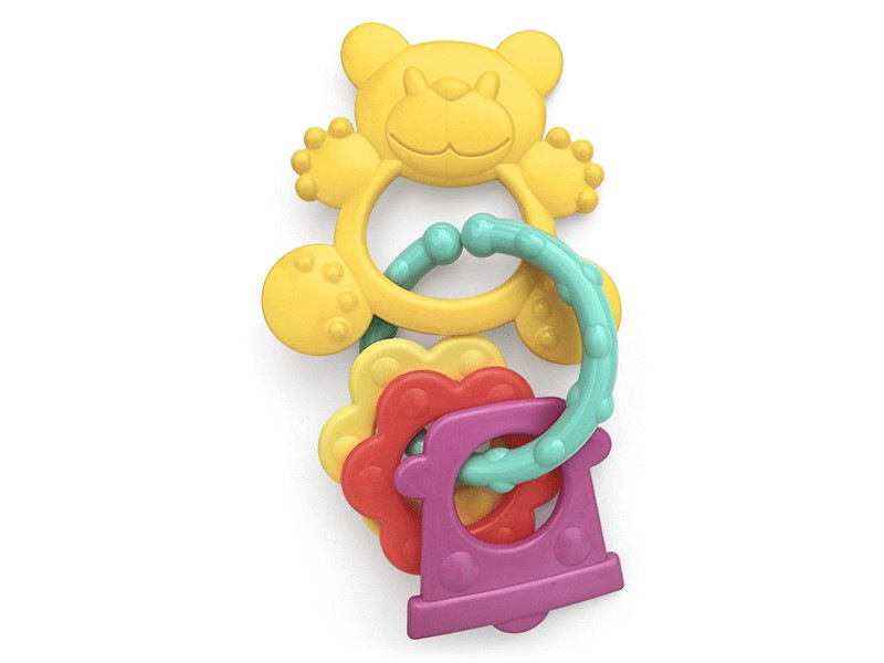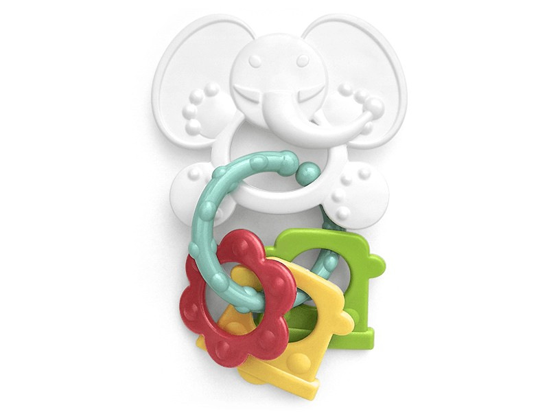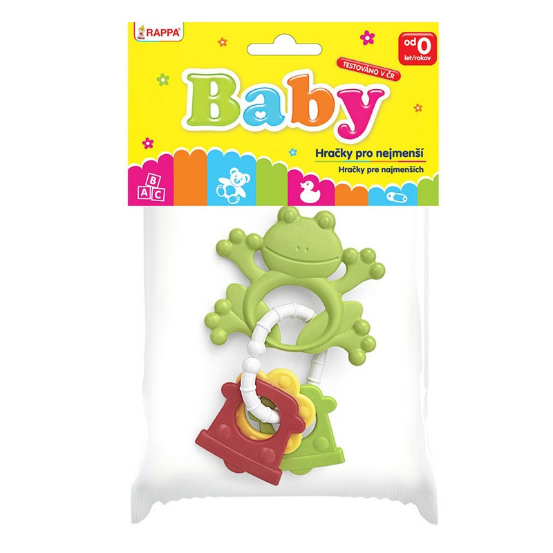 Veselé barevné chrastítko/kousátko se dvěmi plastovými přívěšky je určeno pro ty nejmenší. Tento praktický kousek navíc rozvíjí motorické a zrakové dovednosti děťátka. Pozor! Barvy se mohou lišit od vyobrazení, vybrat můžete pouze druh!