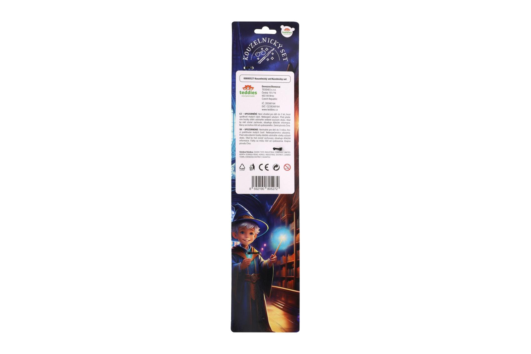 Staňte se mistrem kouzel. Tento kouzelnický set přenese děti do světa fantazie, čar a zaklínadel. Stylová hůlka a typické kulaté brýle jsou nezbytnou výbavou každého malého kouzelníka – ať už se chystá na čarodějnický trénink, kouzelnický souboj nebo kouzla jen tak pro zábavu. Rozměry balení 10 x 43 cm Vhodné pro děti od 3 let