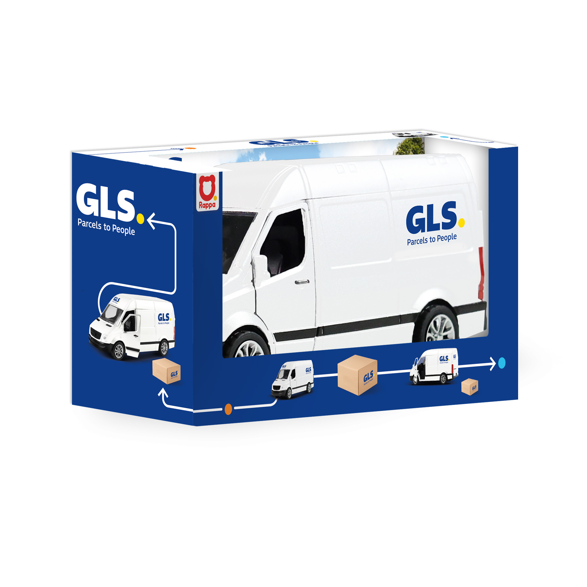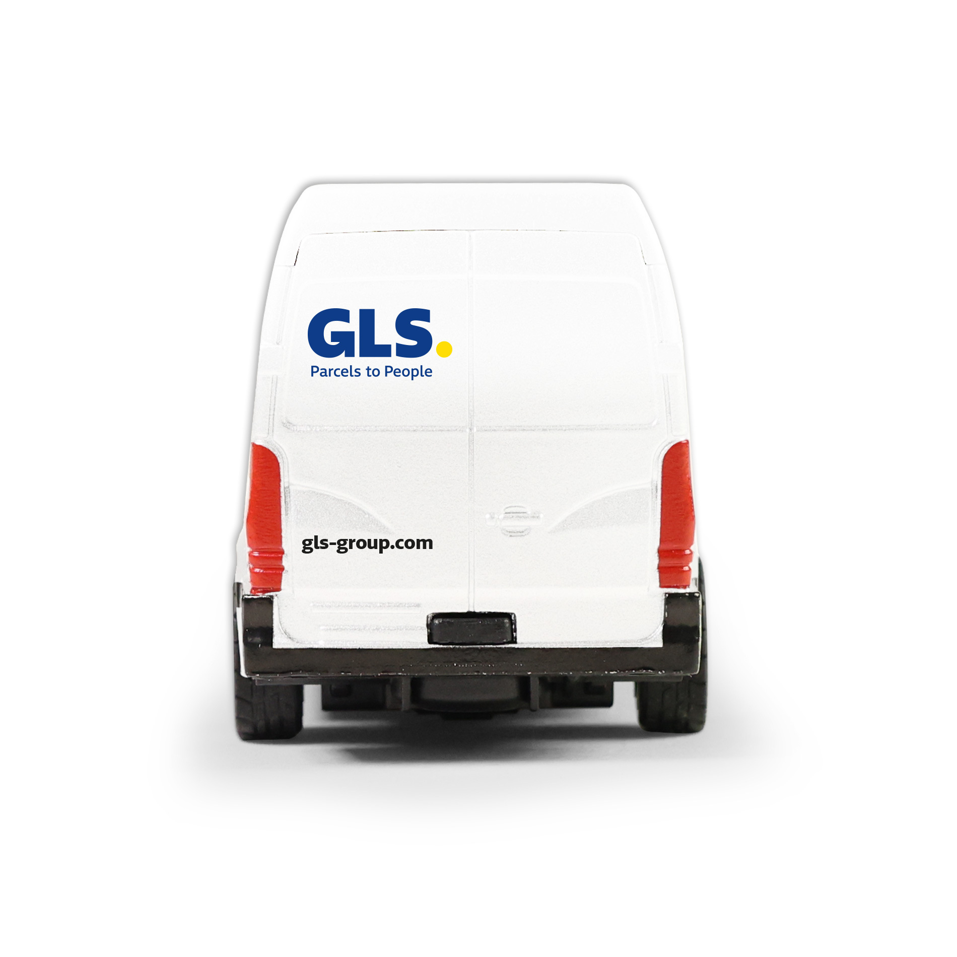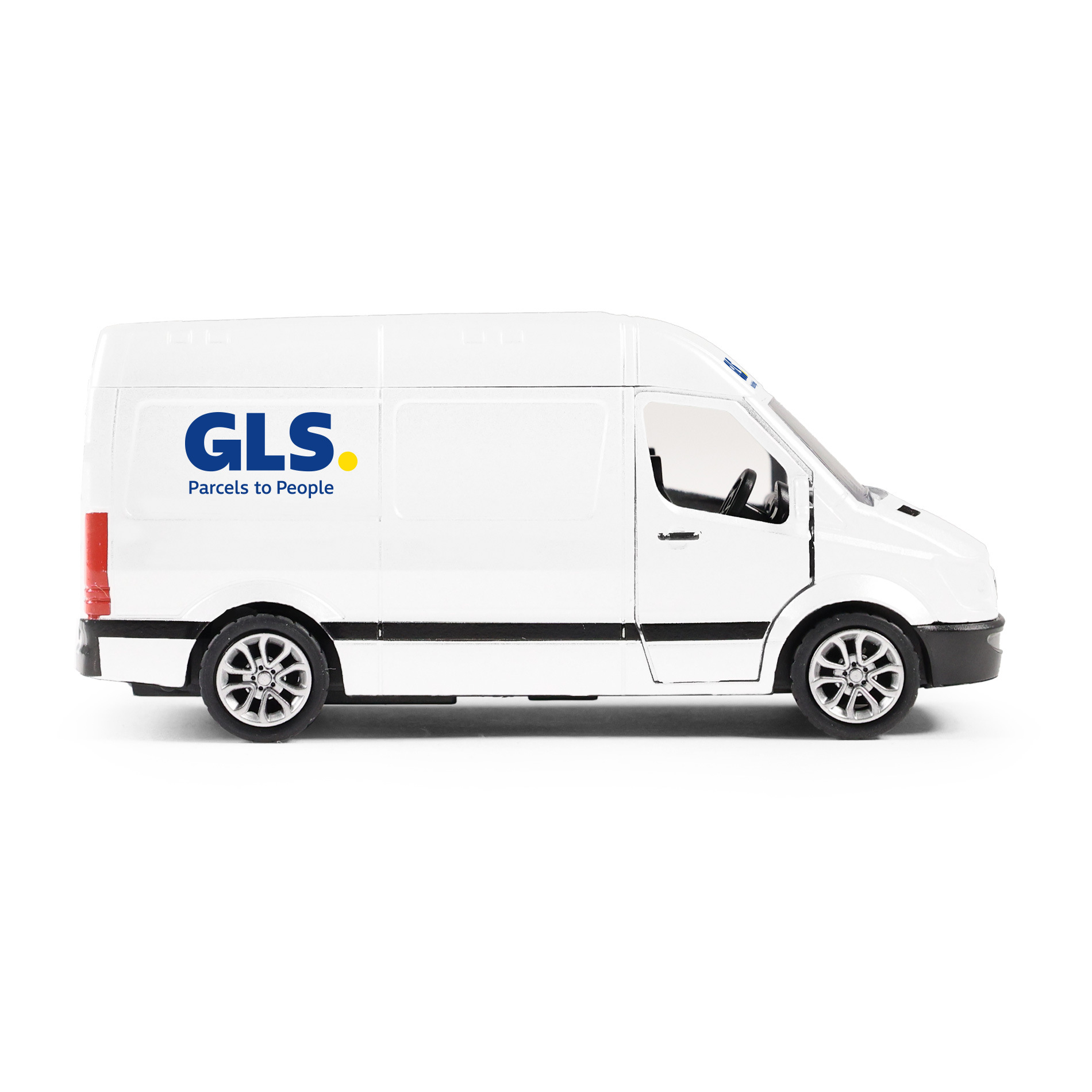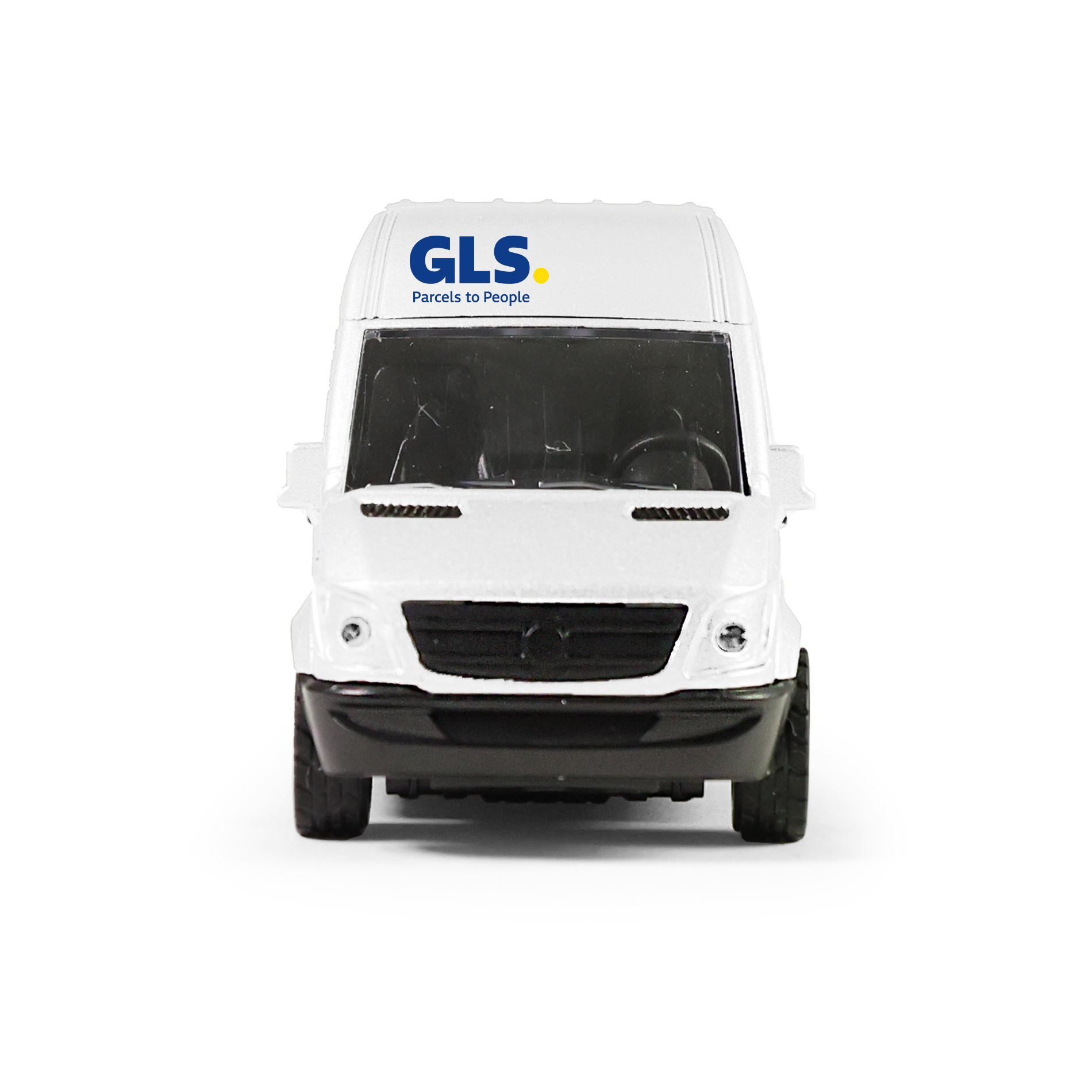 Rozšiř si svůj vozový park a pořiď si tuhle originální kovovou dodávku s logem přepravní společnosti GLS. Auto má otevírací přední dveře. Jezdí na zpětný chod a jeho délka je 12 cm.