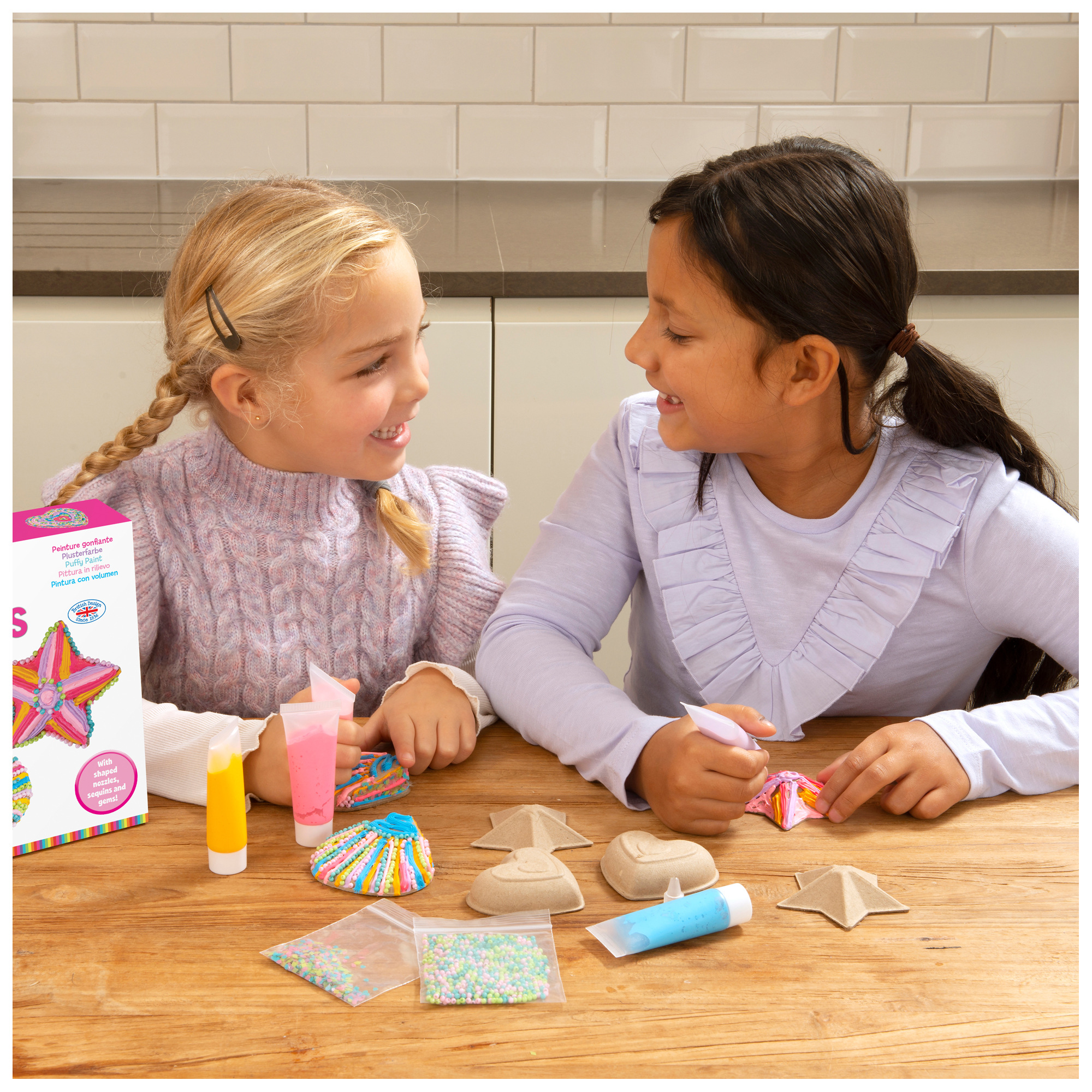 Zdobení krabiček: Zdobte papírové krabičky ve tvaru hvězdy, srdce a mušle pomocí barev. Různé trysky: Připojte různé tvary trysek k tubám s barvou a vytvářejte unikátní vzory. Třpytivé ozdoby: Pro ještě větší efekt přidejte flitry a korálky.