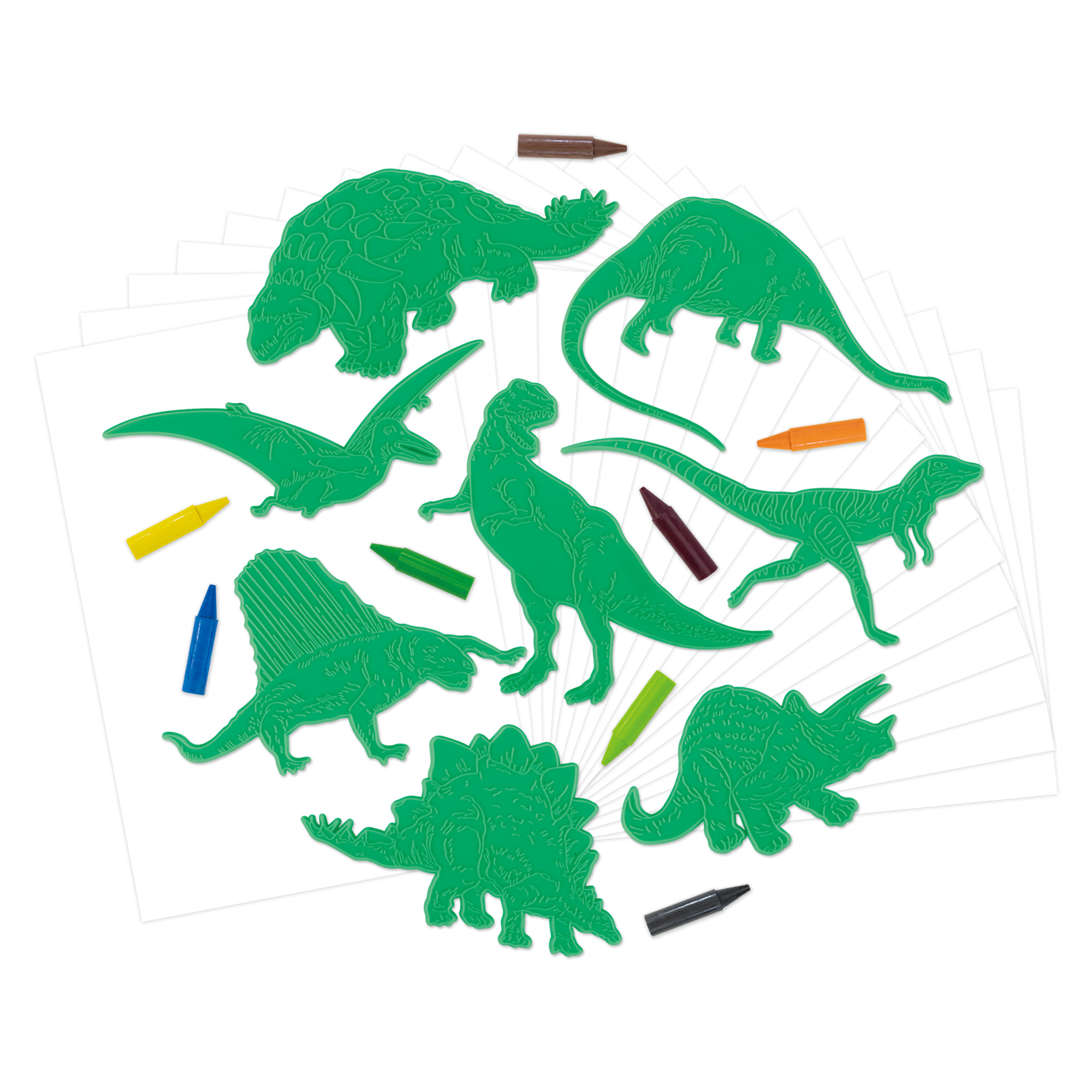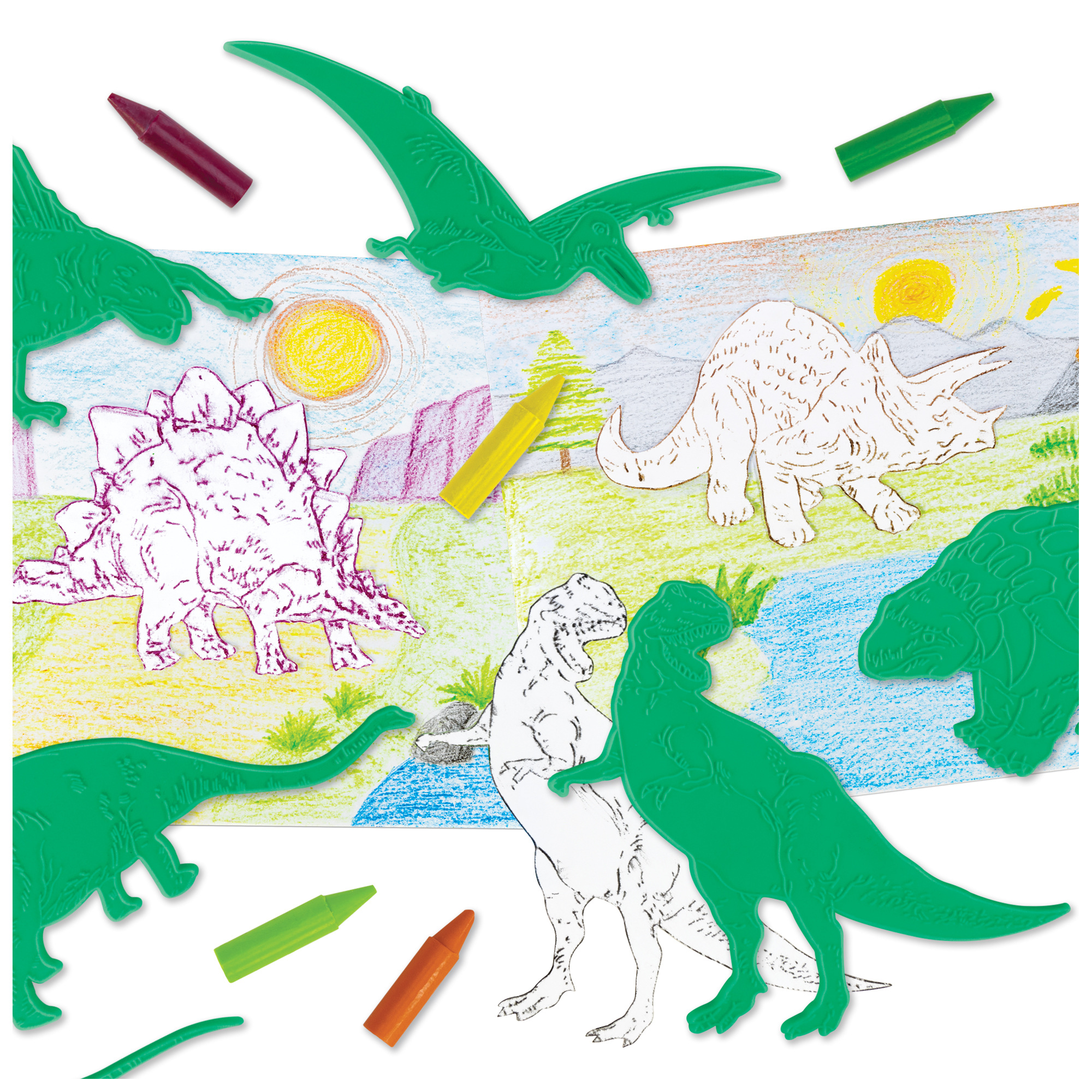 Tento klasický set šablon nabízí realistické ztvárnění dinosaurů s vyvýšenými detaily, které jsou ideální pro mladé umělce.