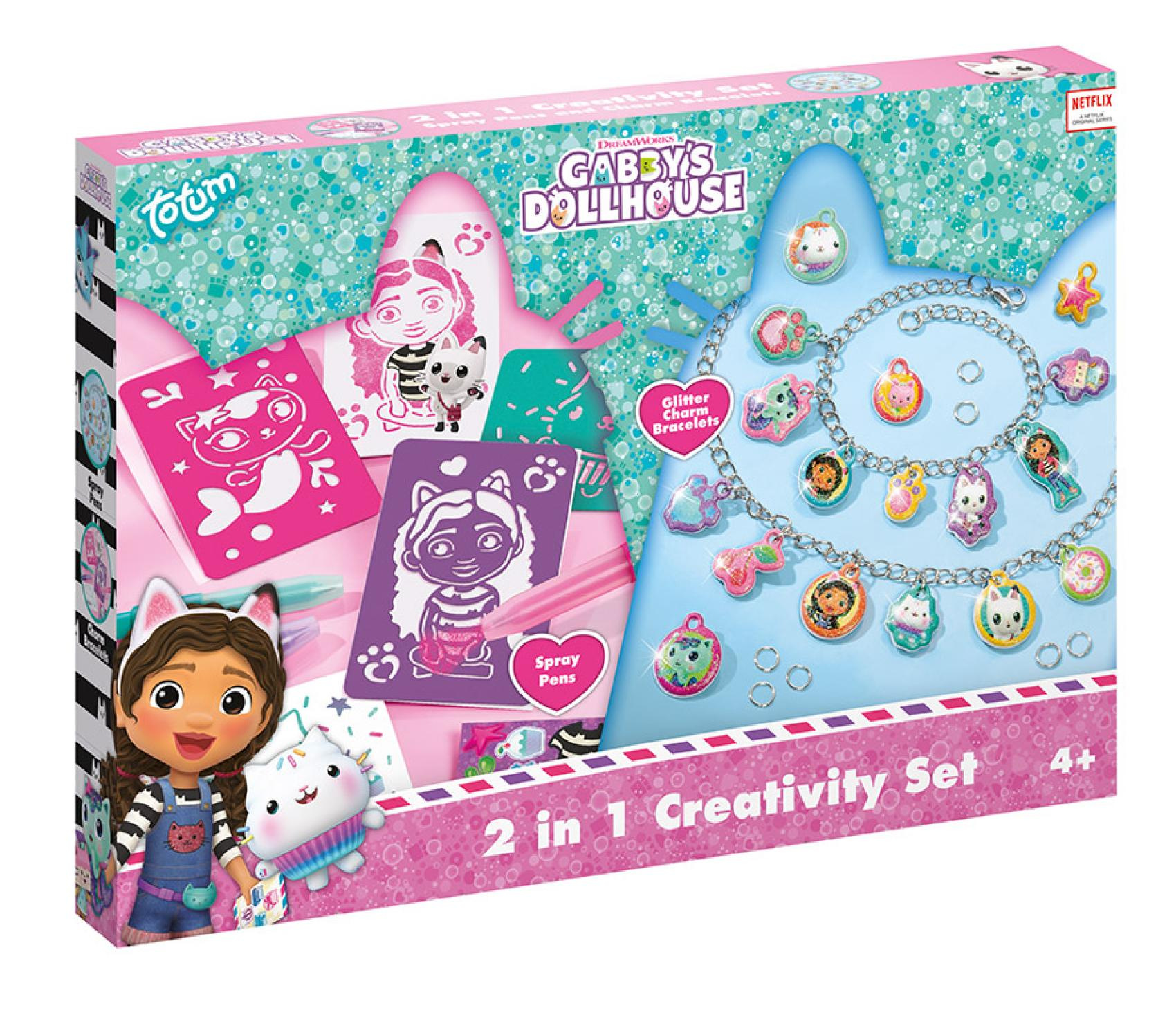 Popis Lowlands Kreativní sada 2v1 foukací fixy + výroba náramků s přívěsky Gabby/ Gabby's dollhouse v krabičce