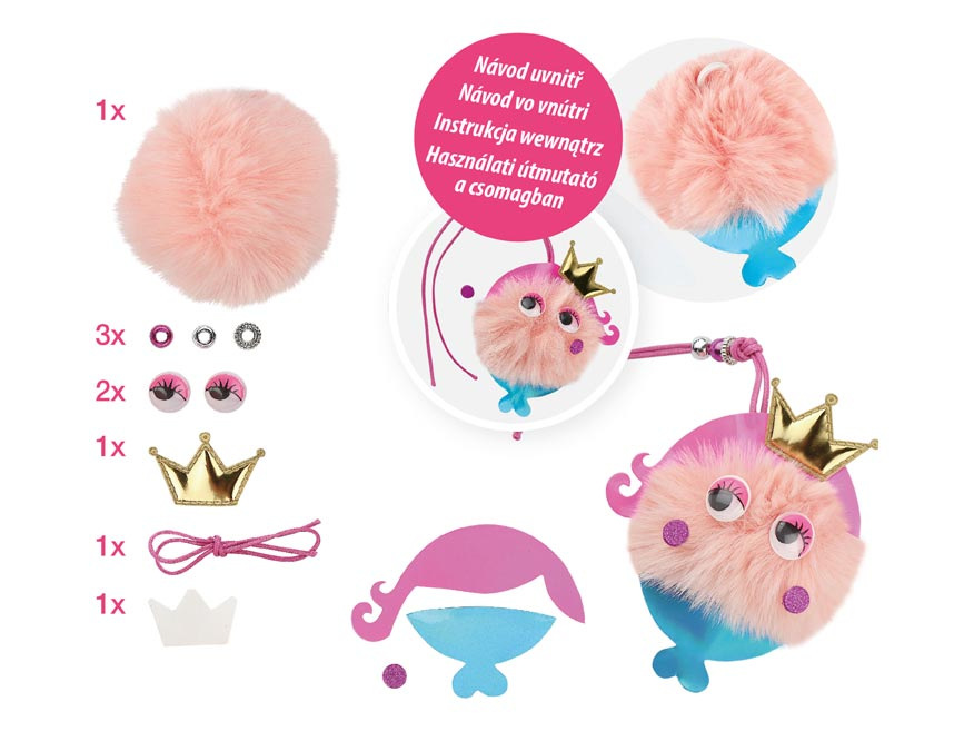 Kreativní set - přívesek princeznaBALENÍ OBSAHUJE:- 1 x pom pom- 3 x korálek- 2 x samolepící oči- 1 x bavlněná šňůrka- 1 x polstrovaná korunka- 4 x samolepka- 1 x návod k použitíVAROVÁNÍ: Nevhodné pro děti do 3 let. Obsahuje malé části, hrozí nebezpečí udušení!Uvedená cena je za 1 balení.