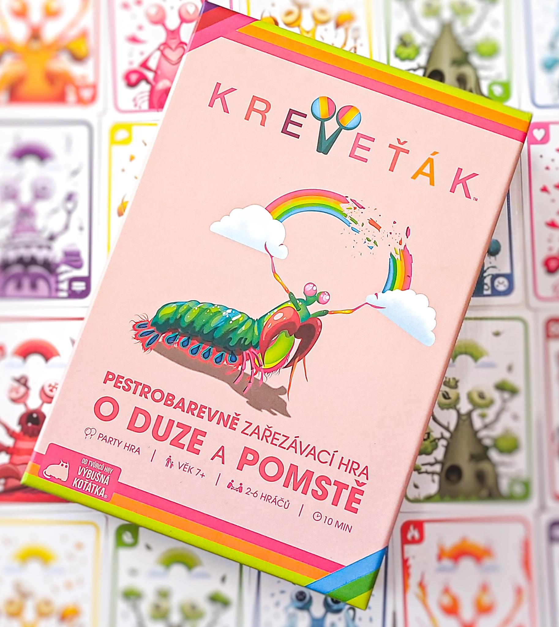 Chystáte se na party ke kamarádovi? Vezměte Kreveťáka! Jedete k babičce na návštěvu? Vezměte Kreveťáka! Chcete okořenit vaši rodinnou oslavu? Vezměte Kreveťáka! Jednoduchá a snadno naučitelná pravidla a svižná hra plná vtipných zařezávacích okamžiků! Jednoduše hra, kterou musíte mít vždy po ruce! A to jsme ani nezmínili, že se jedná o karetní počin z produkce Výbušných koťátek.