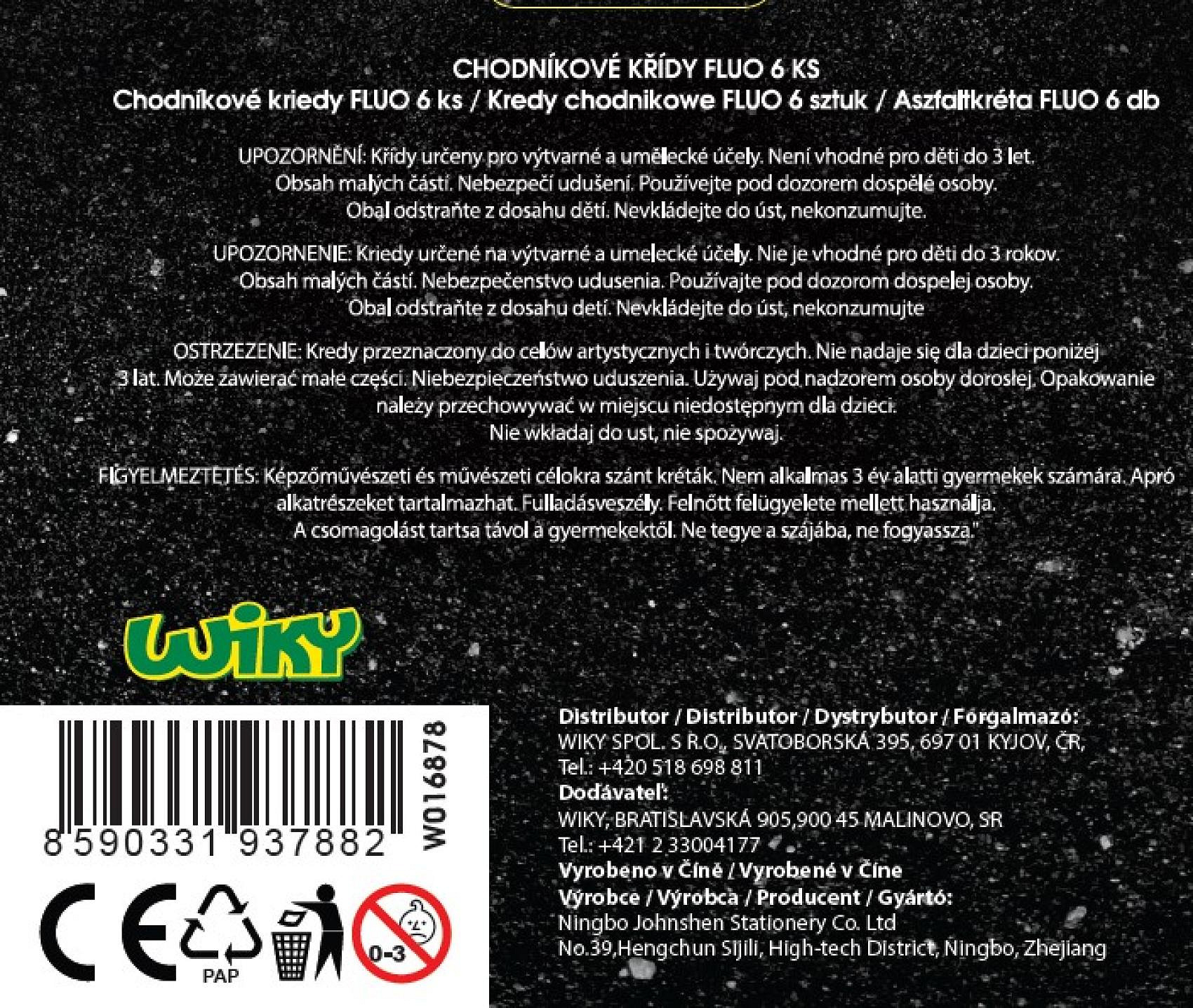 Popis Wiky Křídy barevné chodníkové fluo 6ks v krabičce 14x13,5cm