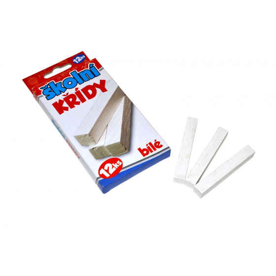 Bílé školní křídy. 12 ks v balení. Rozměr křídy: 8 x 1,1 cm.