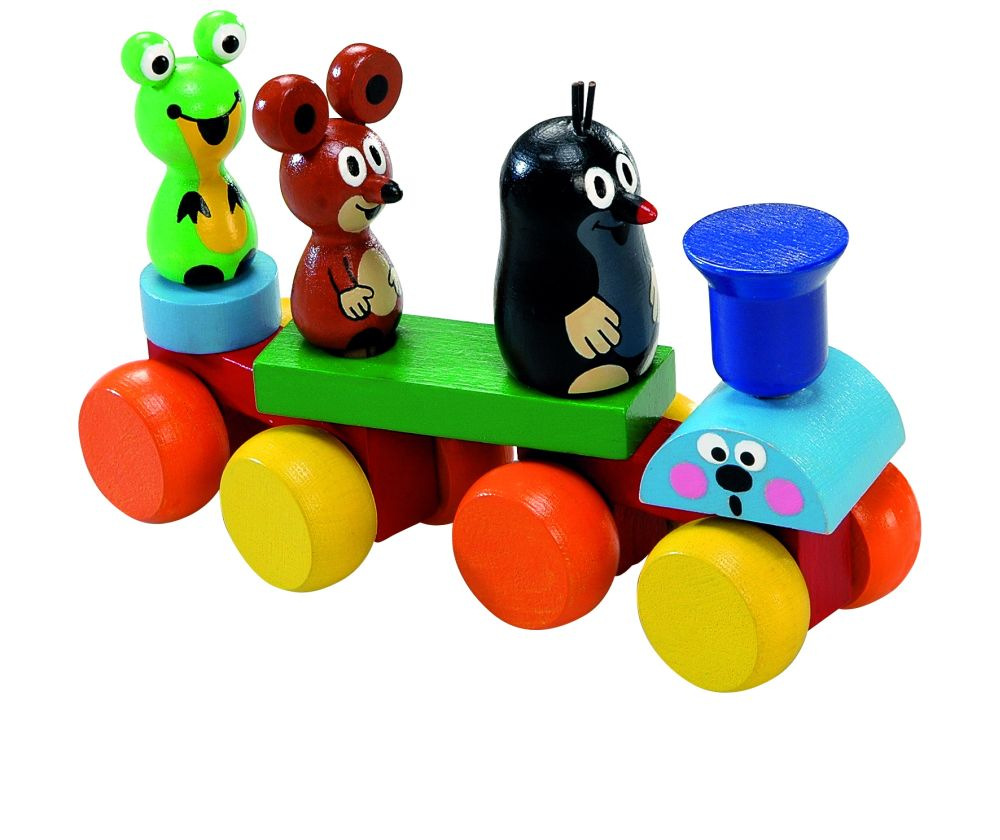 Dřevěné montážní auto s Krtkem, které při pohybu mrká. Lze ho rozložit a opět složit. Baleno v krabici z tvrdého papíru. Nevhodné pro děti do 3 let. Obsahuje malé části. Výrobek je zdravotně nezávadný.
