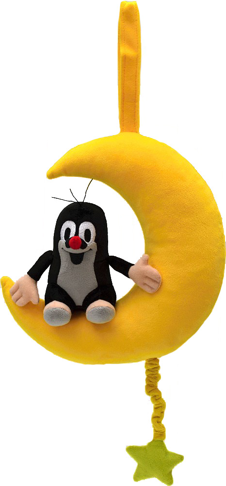 Plyšová hračka s mechanickým hracím strojkem. Zatáhněte za šňůrku a nechte letět Krtečka na měsíčku ke hvězdám při příjemné melodii. Autor hudby: prof. Vadim Petrov. Délka hry strojku je necelé 2 minuty. Snadné uchycení pomocí suchého zipu.