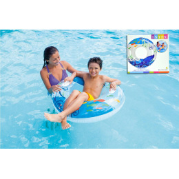 Nafukovací maxi kruh na plavání pro děti na vodu, se dvěma madly, v zářivém motivu. Nafukovací kruh pneumatika je plavecká pomůcka pro plavání a vodní hrátky. Tloušťka materiálu 0,25 mm, průměr kruhu 97 cm. Maximální zatížení je 80 kg. Rozměry balení 18 x 17 x 6 cm. Vhodné pro děti od 9 let.
