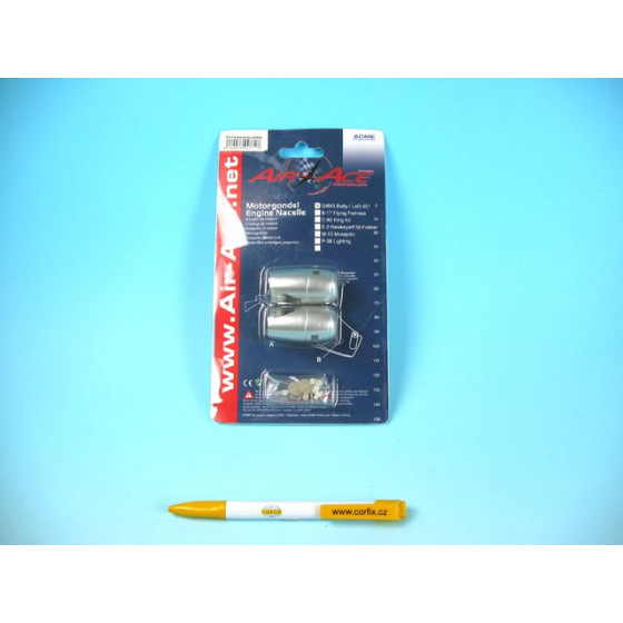 Pravá a levá motorová gondola stříbrná vč. uložení hřídele a převodů pro P-38 Lightning