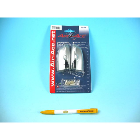 Pravá a levá motorová gondola stříbrná vč. uložení hřídele a převodů pro P-38 Lightning