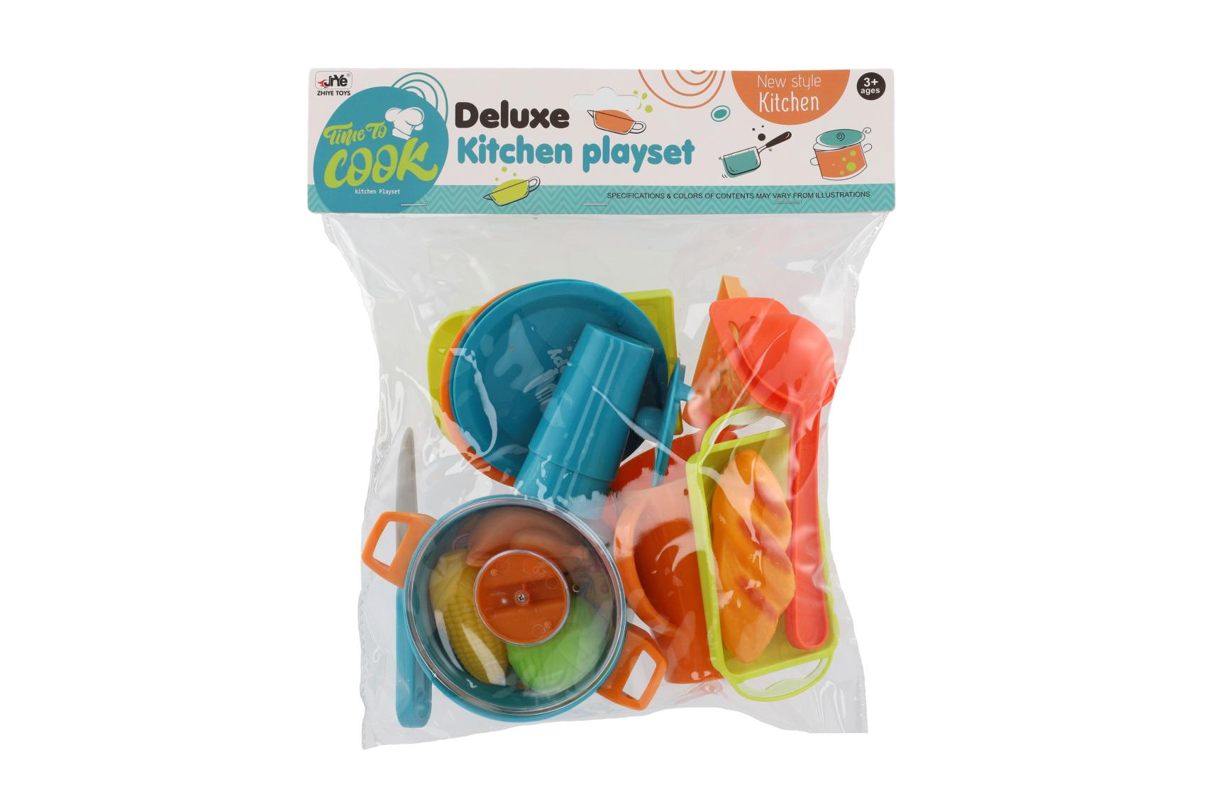 Vaření jako u maminky! Tato barevná plastová kuchyňská sada obsahuje vše potřebné pro malou kuchařku nebo kuchaře – hrnce, pánvičky, pokličky i příbory. Ideální pro hru na vaření, rozvoj fantazie a nápodobu reálného světa. Rozměr balení: cca 28 × 28 cm Vhodné pro děti od 3 let