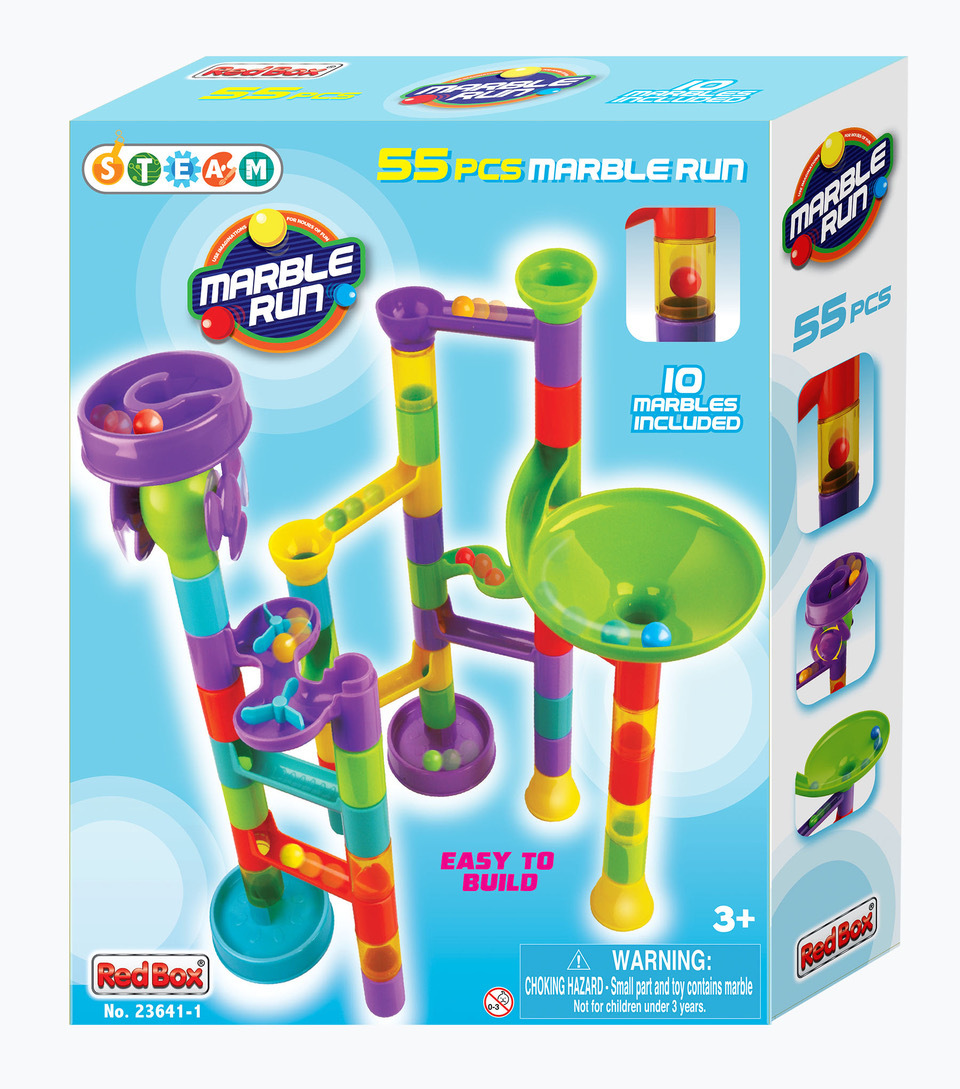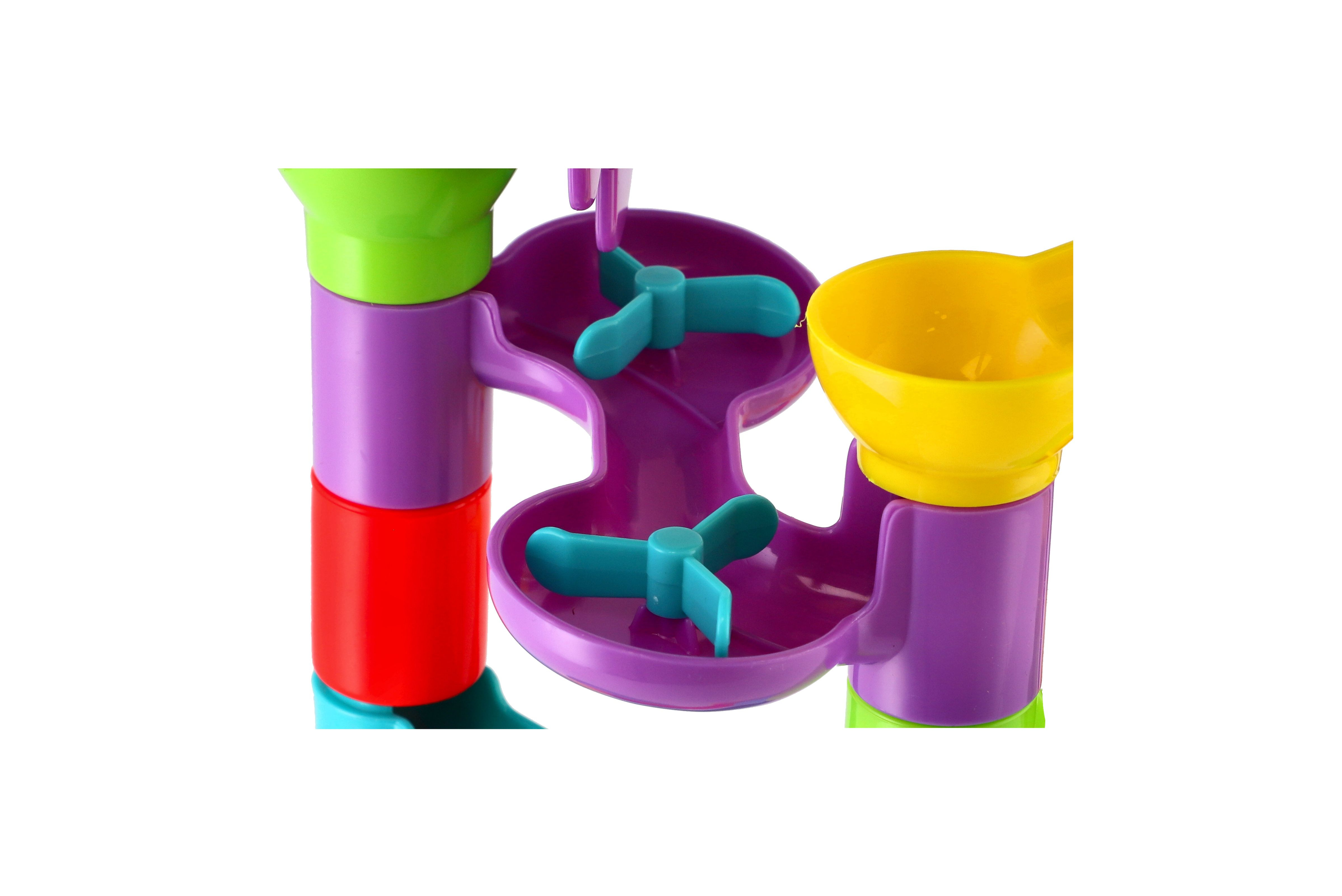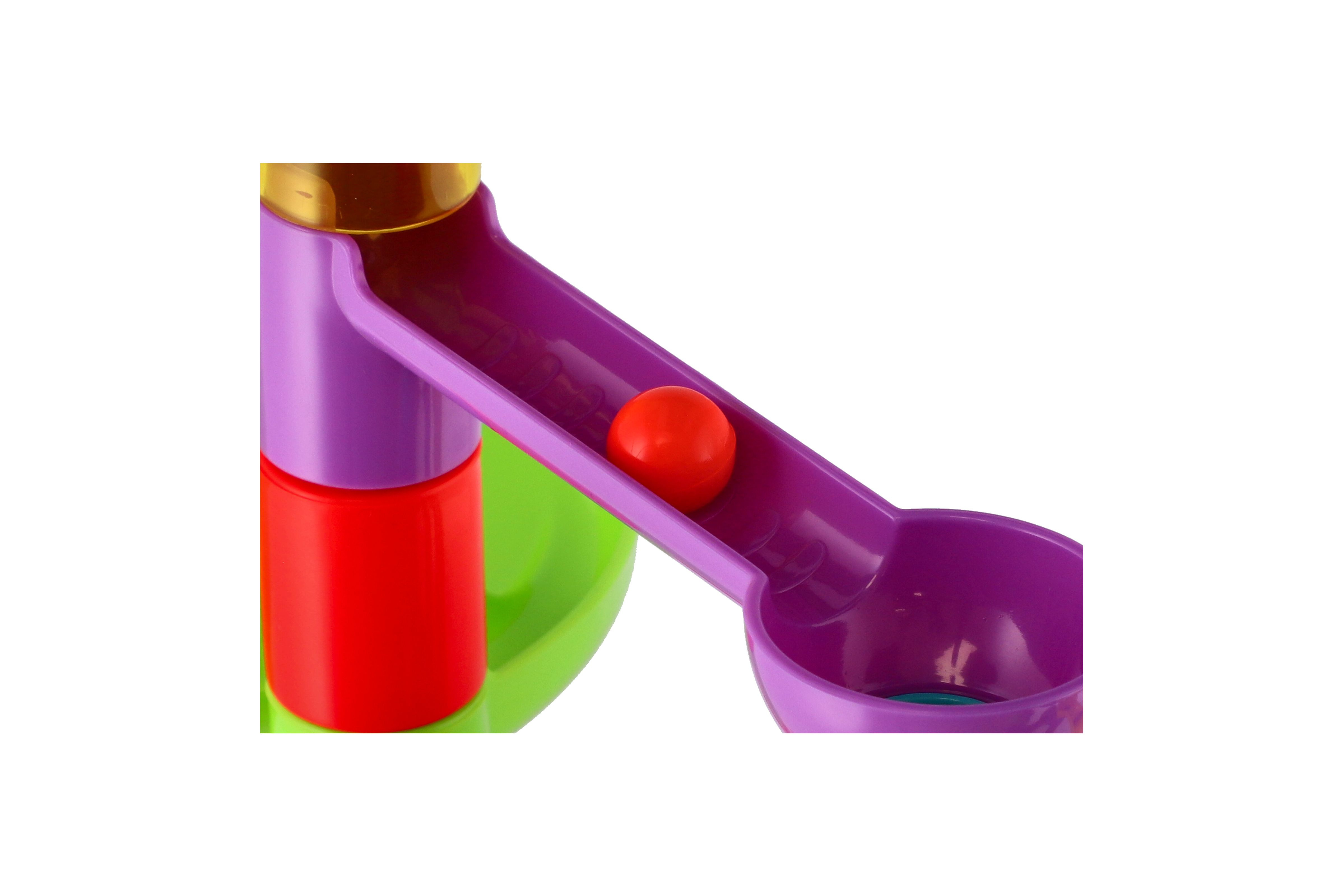 Kuličková dráha umožňuje sledovat cestu kuličky a její rychlost z horní části až dolů. Která kulička bude rychlejší a které sestavení dráhy bude zajímavější? Barevná kuličková dráha obsahuje spoustu překážek, které zvyšují napětí, zda kulička správně proběhne celou stavebnicí. Sestavit dráhu může dítě mnoha způsoby, dle vlastní fantazie. Stavebnice slouží k procvičení jemné motoriky a donutí dítě přemýšlet. Balení obsahuje 55 ks z toho 10 kuliček. Rozměr: 24 x 35 x 8 cm Vhodné od 3 let