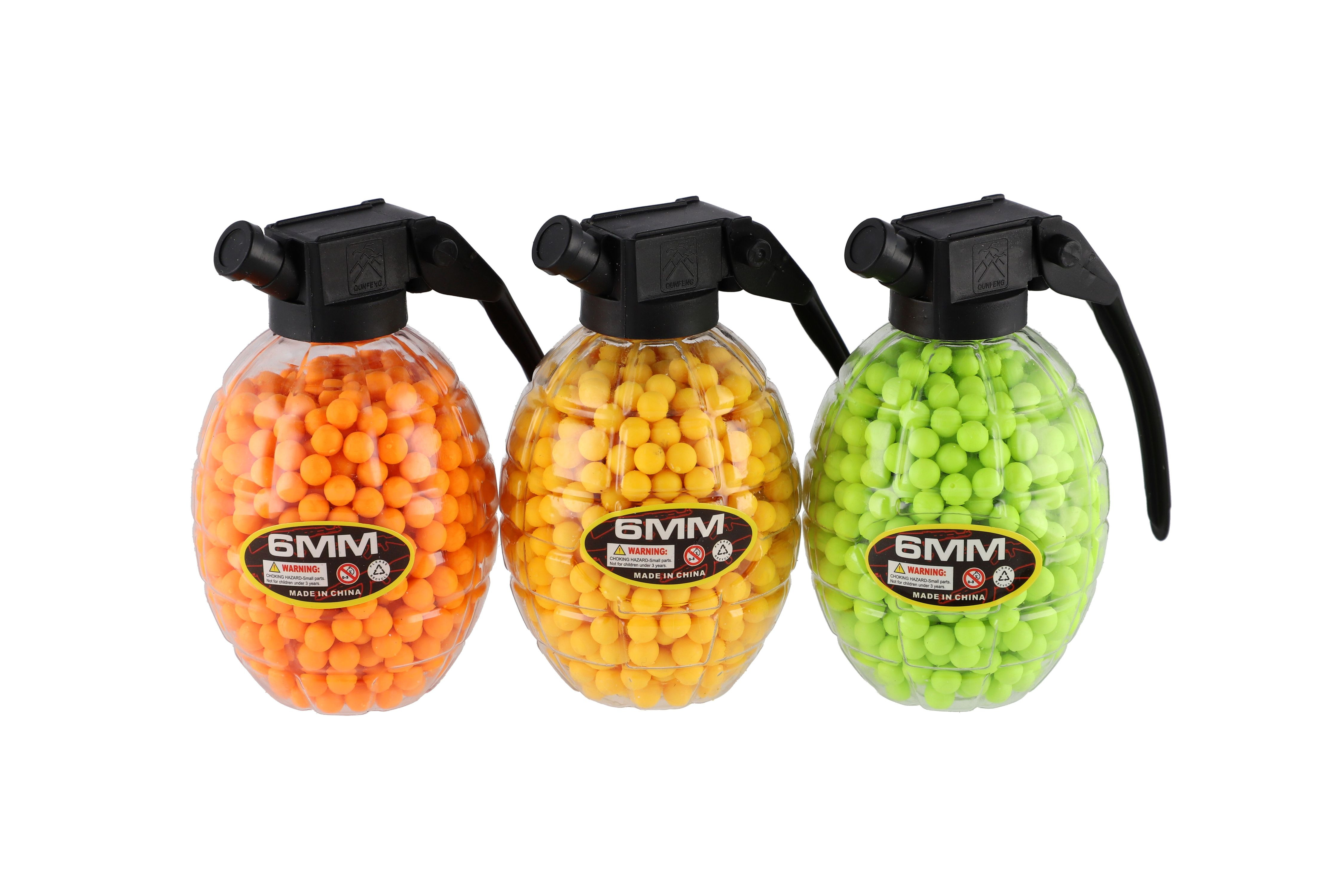 Set nábojů do pistole kuličkovky v dóze ve tvaru granátu. Balení obsahuje 800 kusů kuliček. Velikost dózy: 10 cm Vhodné od 3 let