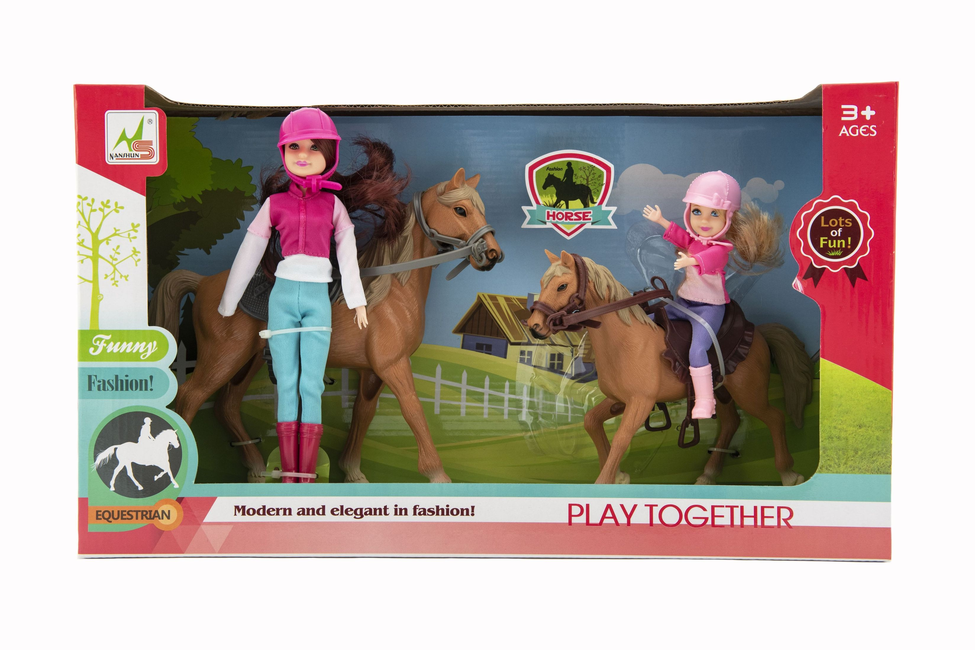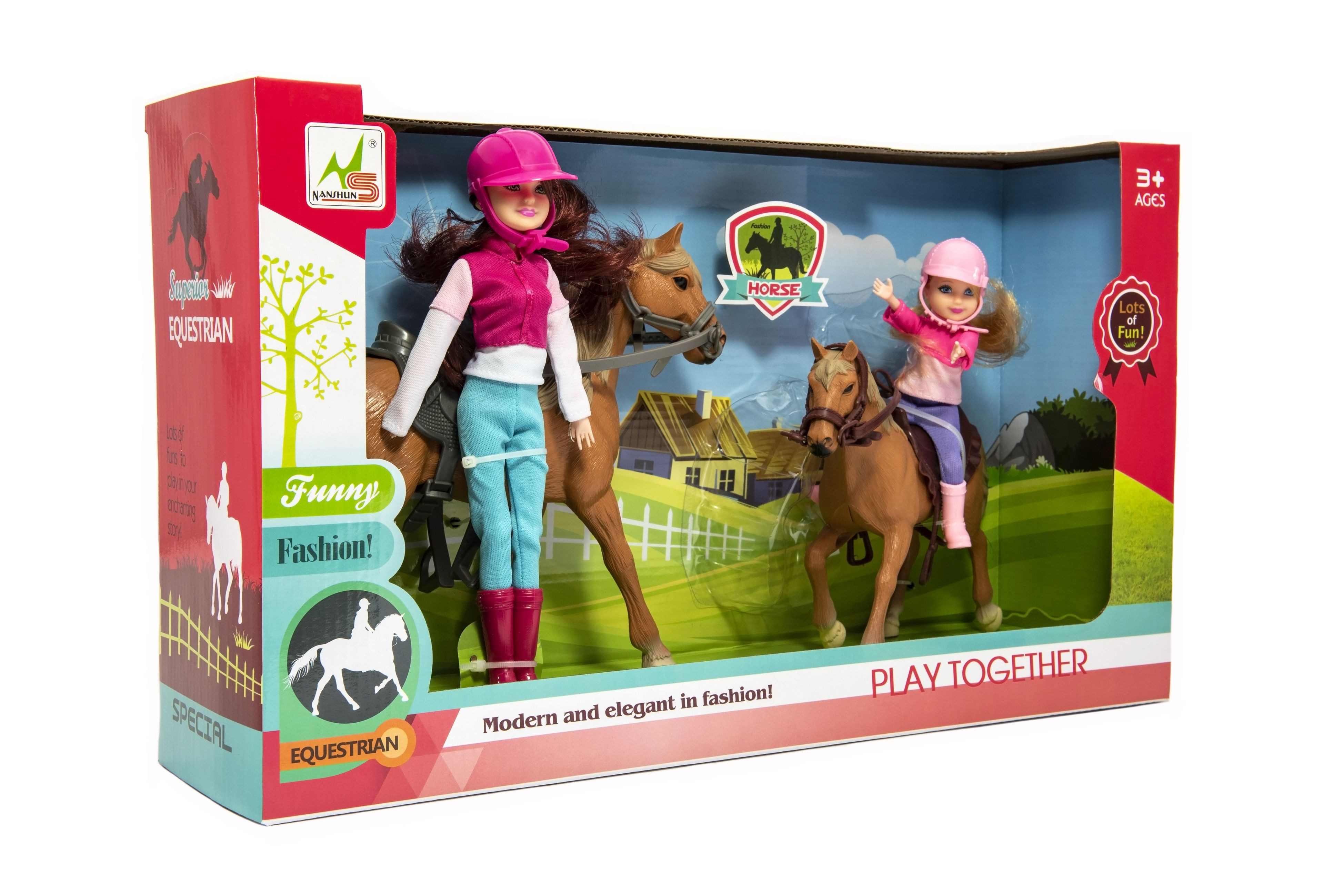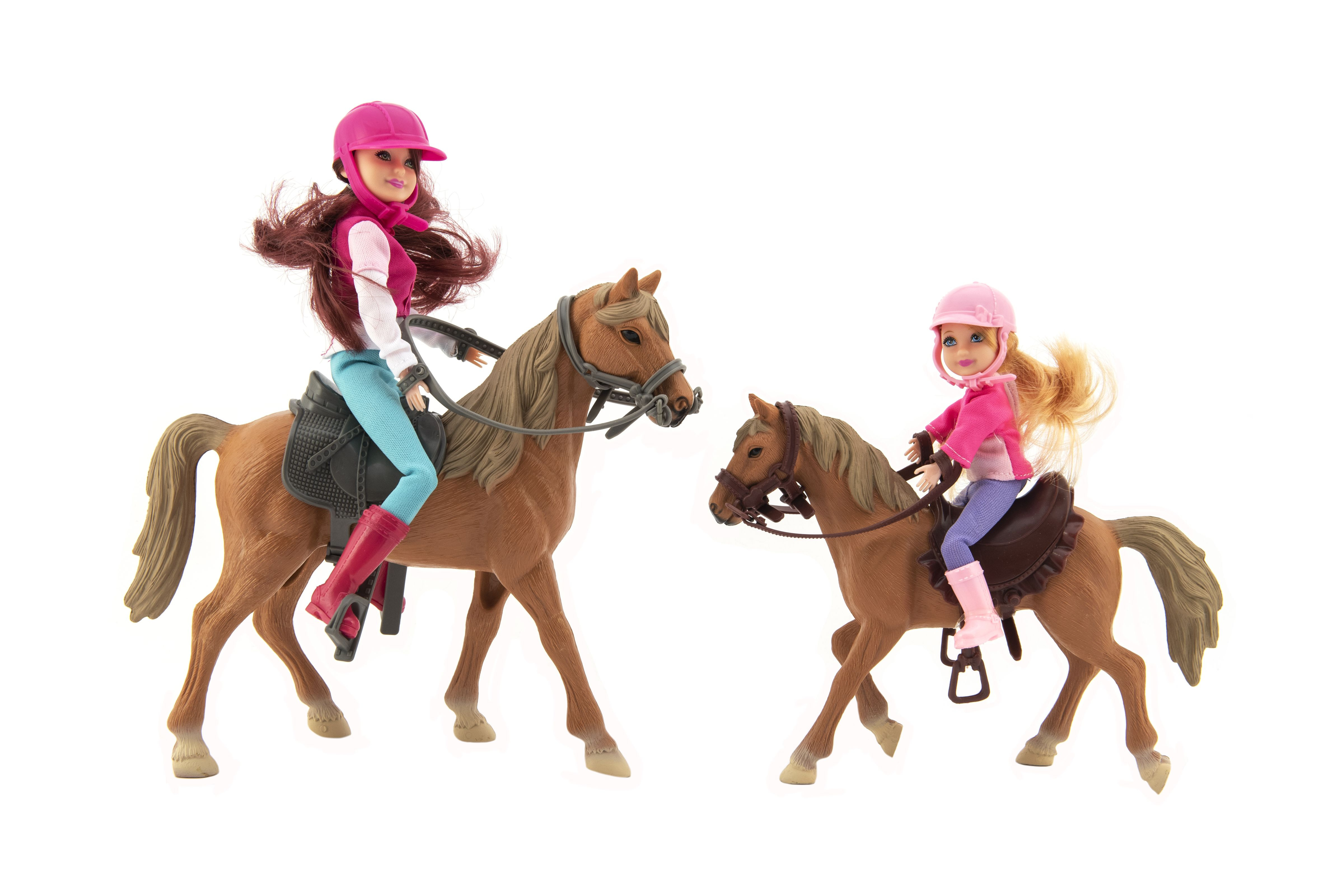 Teddies Kůň 2ks + panenka žokejka 2ks plast v krabici 44x26x12cm