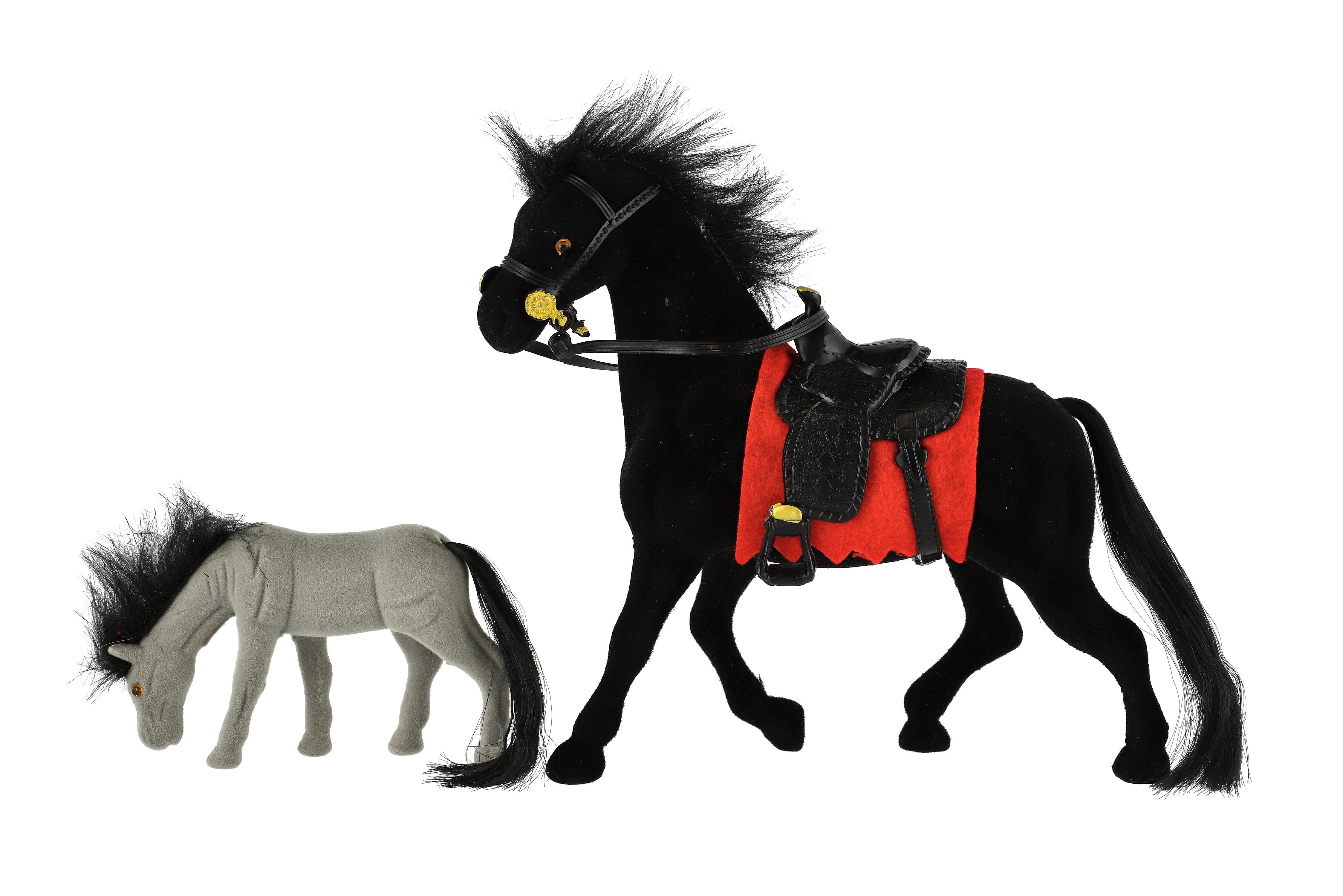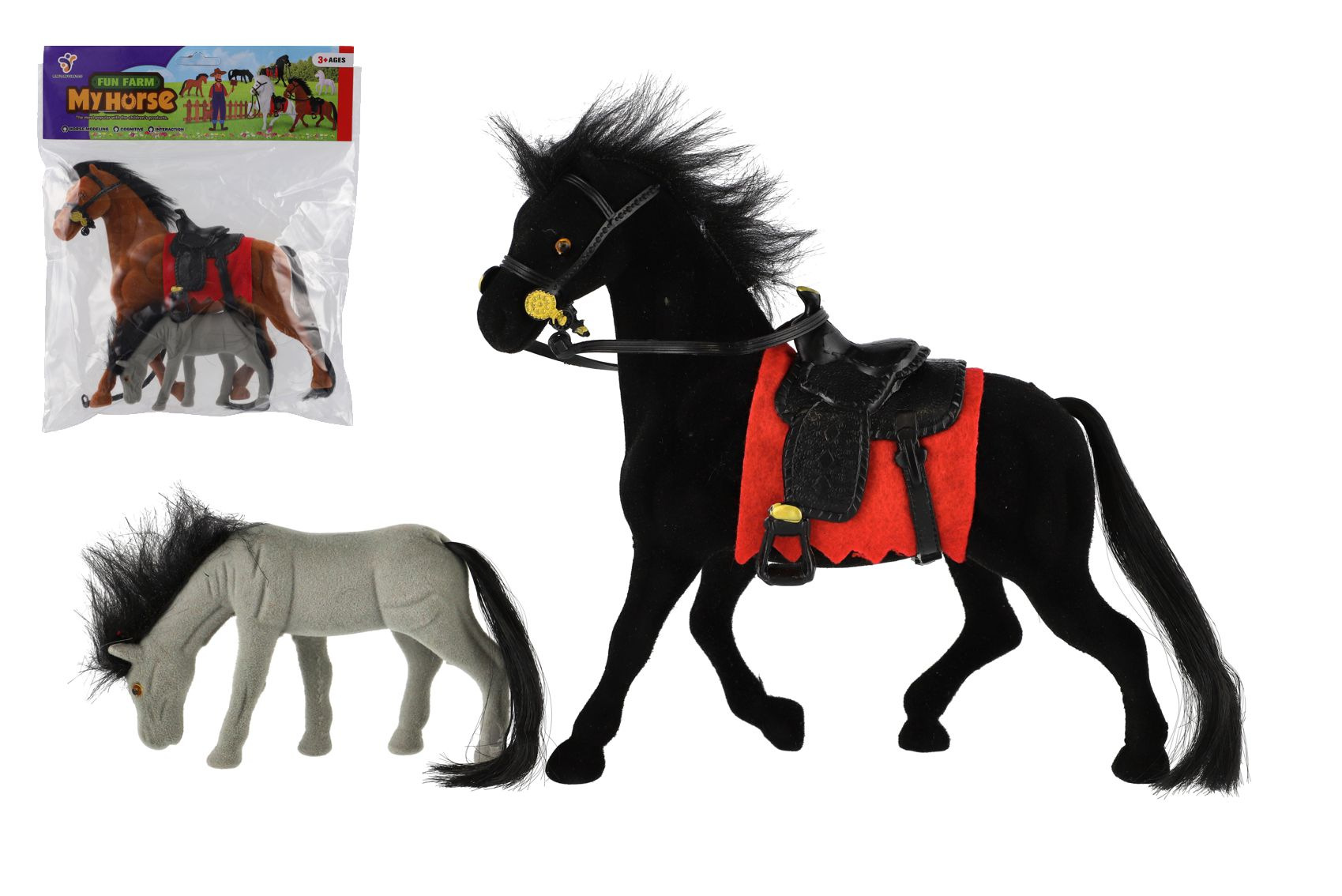 Popis Kůň fliška 23cm se sedlem s hříbětem 3 barvy v sáčku