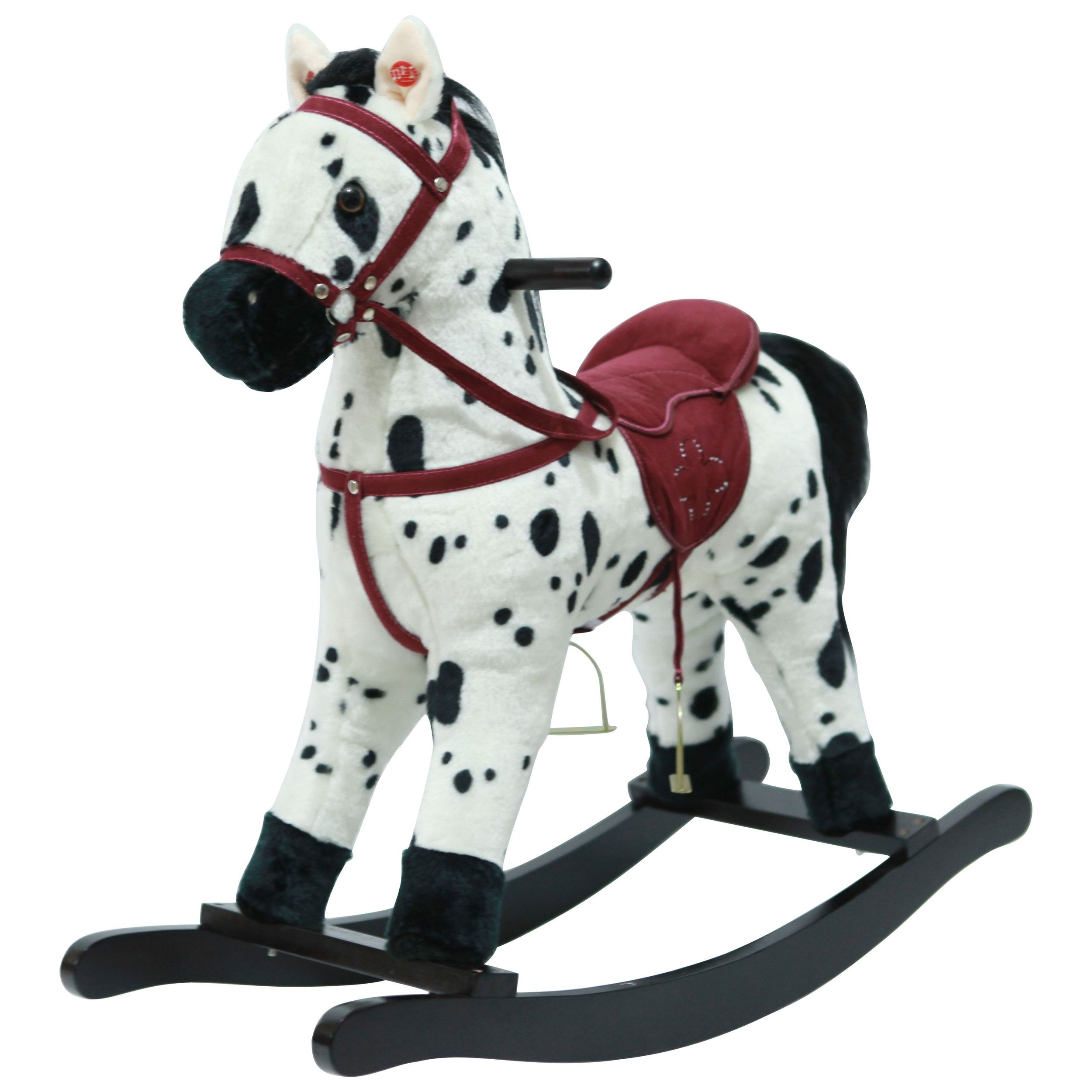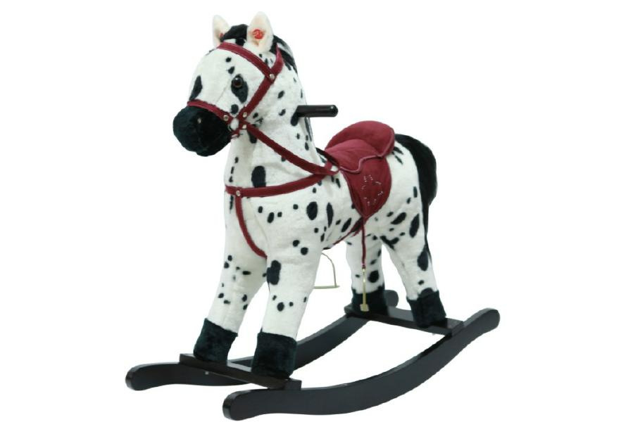 Teddies Kůň houpací bíločerný plyš na baterie se zvukem a pohybem nosnost 50kg v krabici