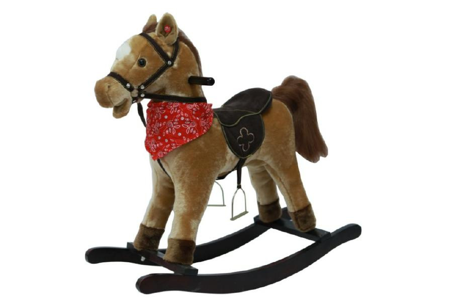 Kůň houpací hnědý plyš na baterie 71cm se zvukem a pohybem nosnost 50kg v krabici 62x56x19cm