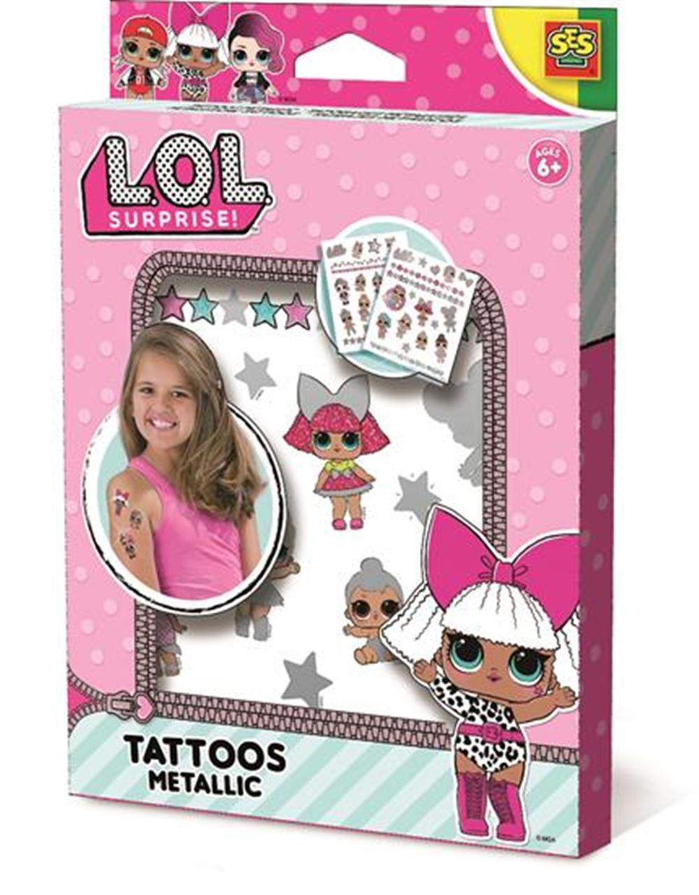 Super cool kolekce L.O.L. metalické tetování, kdo by ho nechtěl? Stačí položit tetování na kůži a navlhčit trochou vody. Kovová vrstva znamená, že nebudete přesně vědět, jak bude vaše tetování vypadat, dokud neodstraníte papír. Tetování je příjemné a pro pokožku bezpečné a lze lehce odstranit. Sada obsahuje 2 listy s tetováním. Věk: 6+