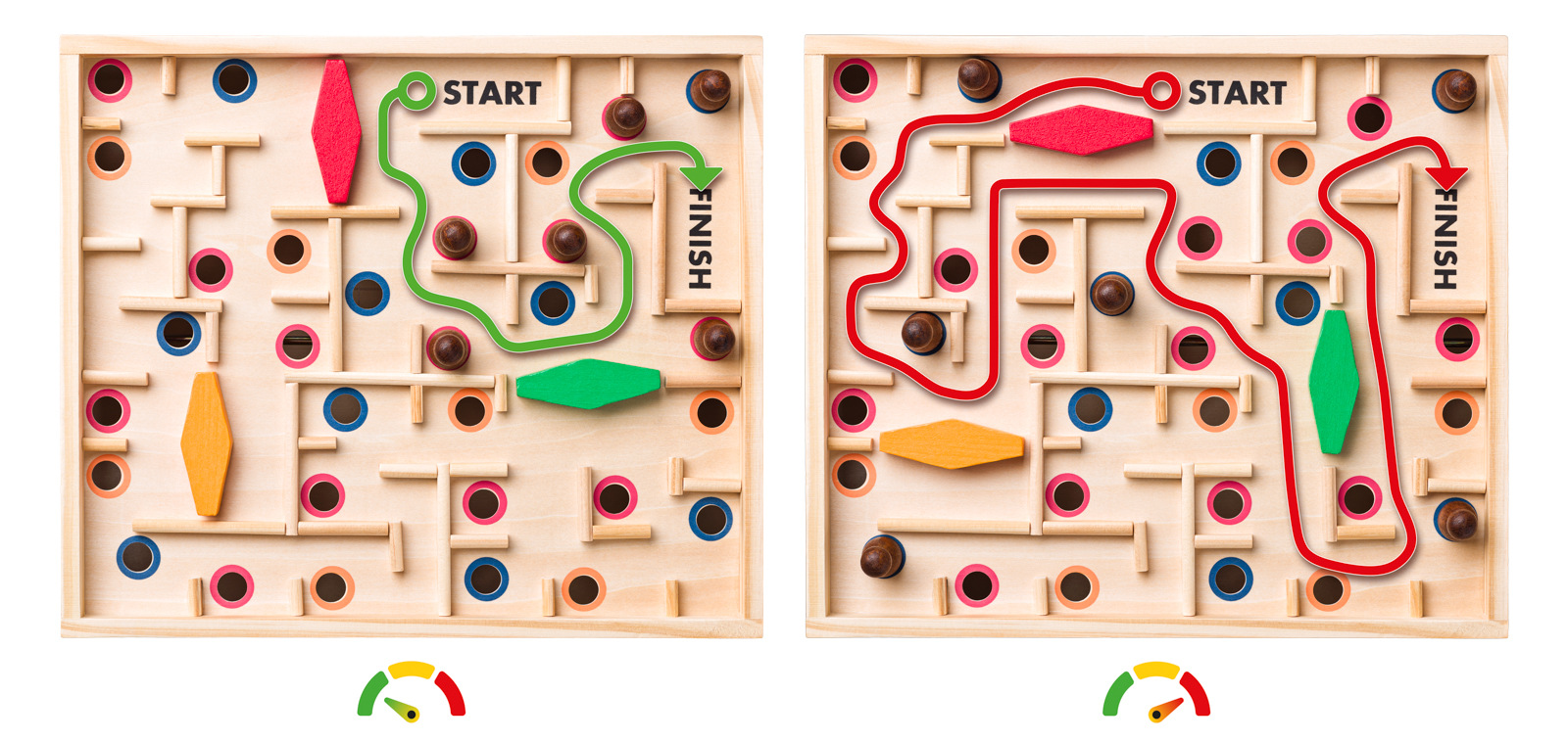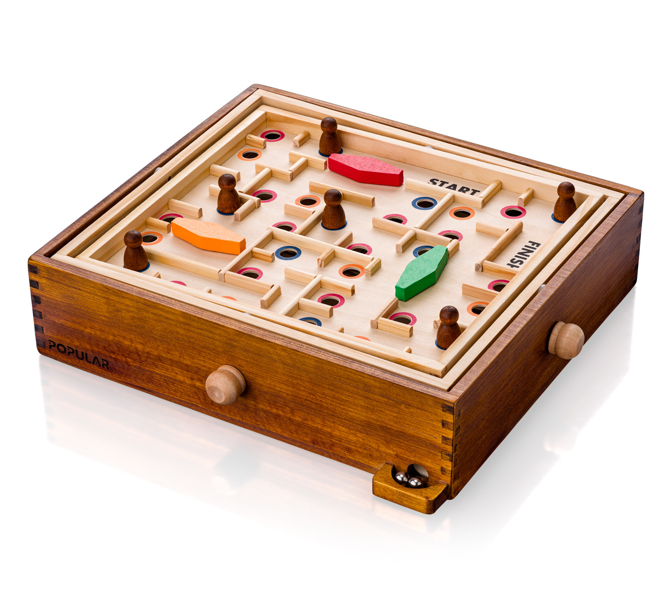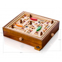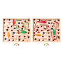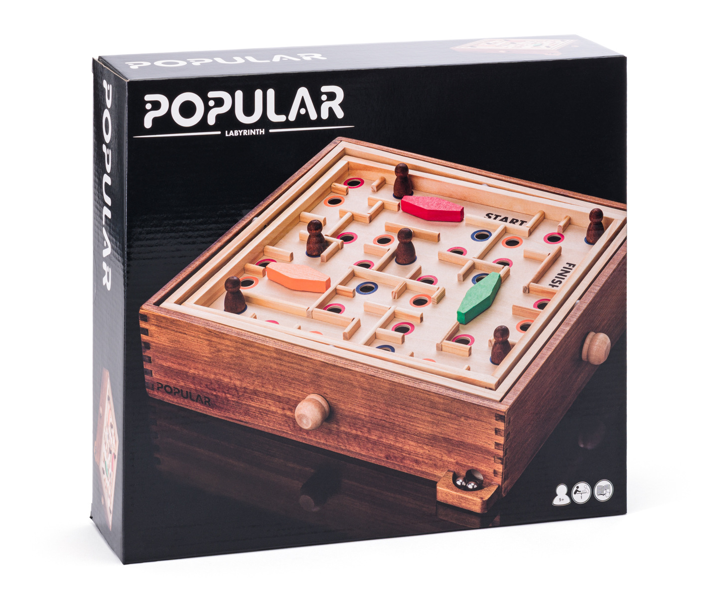 Pomoci dvou postranních koleček naklápěj rovinu s bludištěm tak, aby kulička prošla od startu do cíle, aniž by propadla otvory dovnitř. Trasu bludiště si můžeš zkrátit či prodloužit pomocí 3 otočných zarážek, které ti nově vymezí prostor. Obtížnost trasy si můžeš usnadnit přiloženými kolíčky, které po vložení do libovolně zvolených otvorů zamezí propadnutí kuličky. | Doporučený věk: 5+| Rozměry výrobků: 28,5 x 32 x 7,5 cm