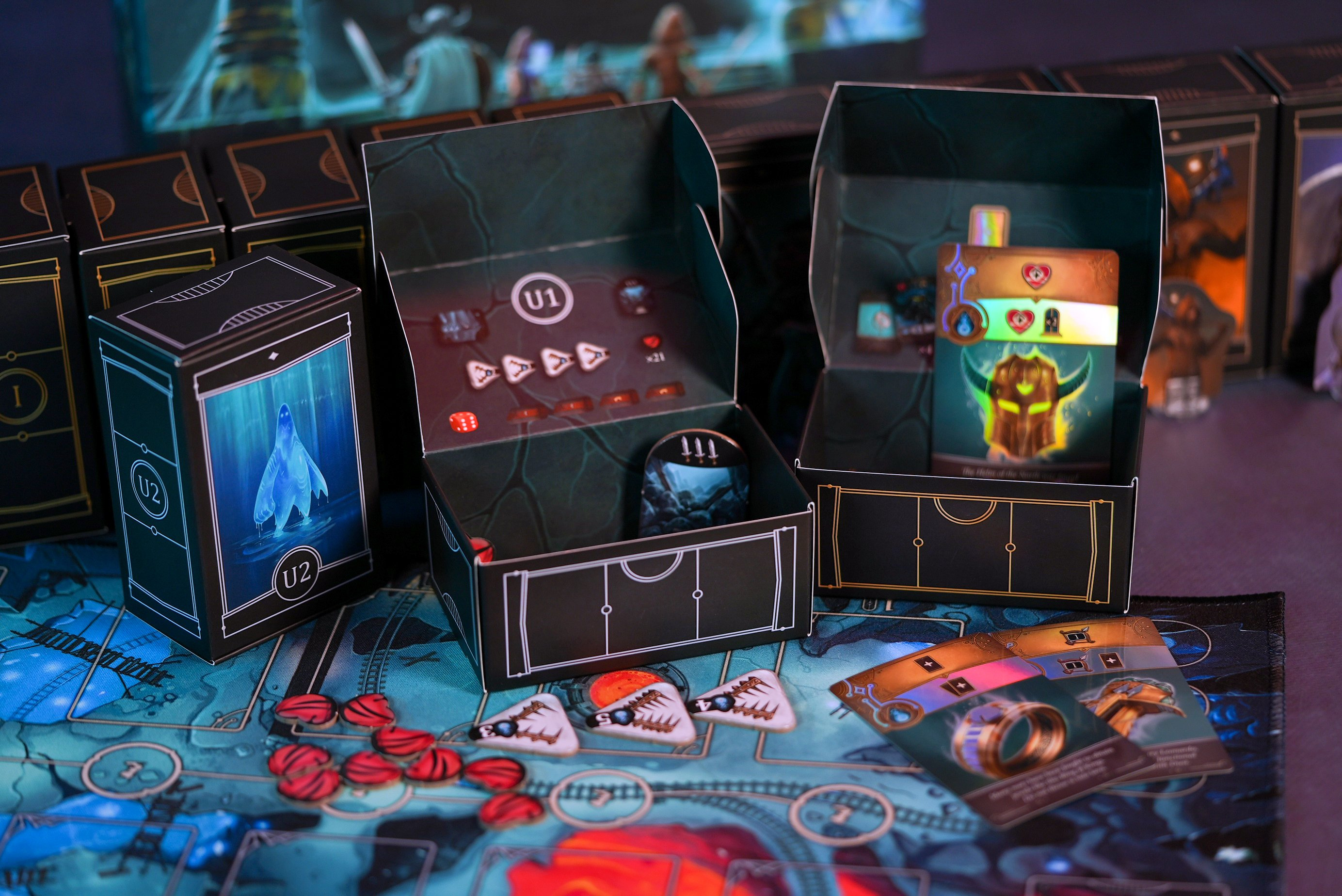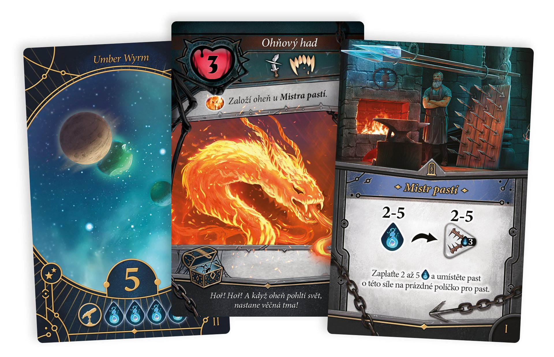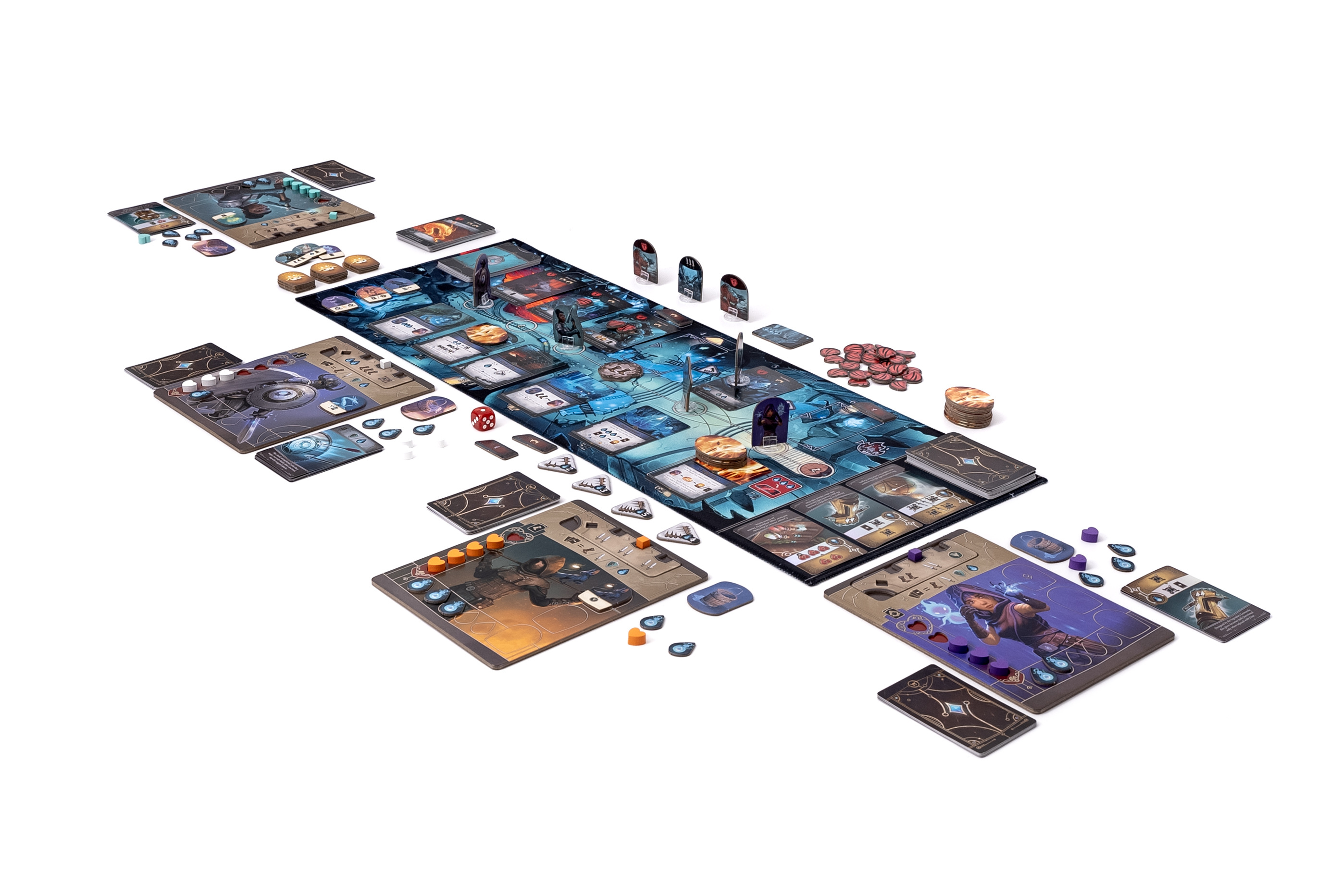 Obsah balení: 182 karet 1 neoprenová herní podložka 4 desky hráčů 21 žetonů houževnatosti 4 žetony použití dovedností 4 hrdinové, 20 žetonů prachu 20 žetonů duchů 8 stupnic dovedností 12 krabiček 21 žetonů poškození příšer 53 žetonů doplňků 1 vozík 1 starověký ciferník 1 kostka Česká pravidla Kniha kapitol 4 žetony jednorožců (mini rozšíření pro hru Kroniky Avelu).