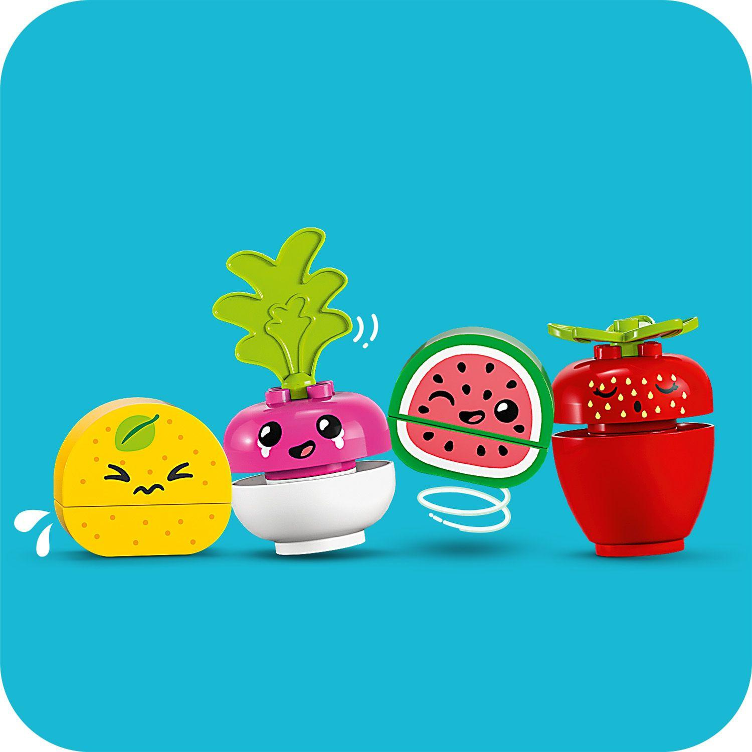 Děti se budou učit vyvažovat kostky, zatímco budou na sebe skládat ředkvičku, jahody, citron a meloun. Všechny stavebnice LEGO DUPLO jsou navržené tak, aby rozvíjely schopnost sebevyjádření. V této stavebnici mají všechny dílky svůj výraz, který zažehne jiskru představivosti a zajistí zábavné hraní!